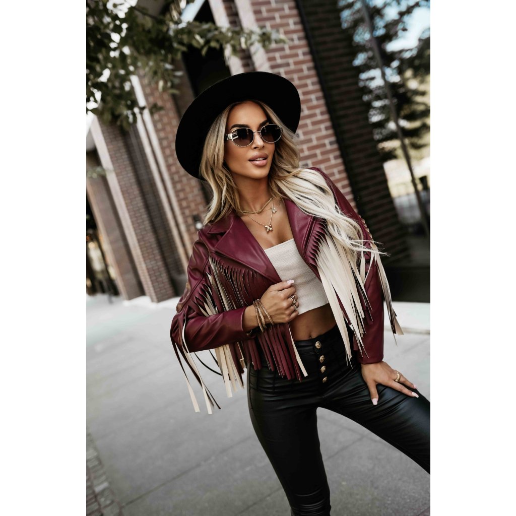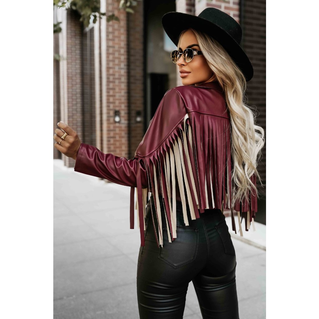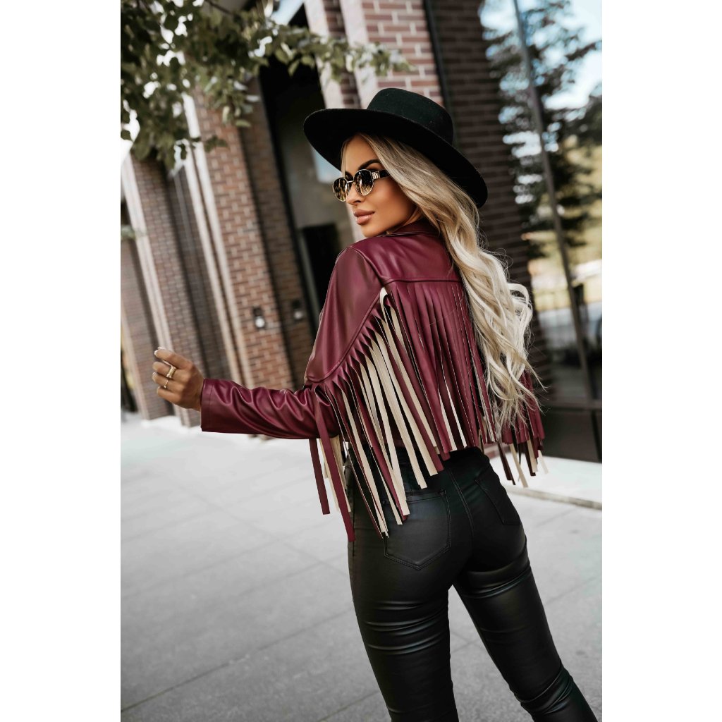 Numoco Krátká bunda s třásněmi z měkké ekokůže - vínová 624-2