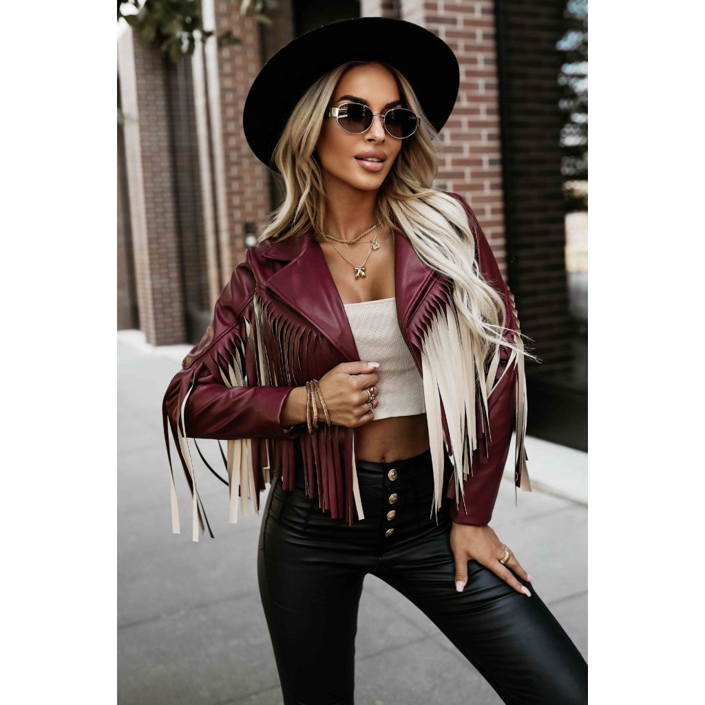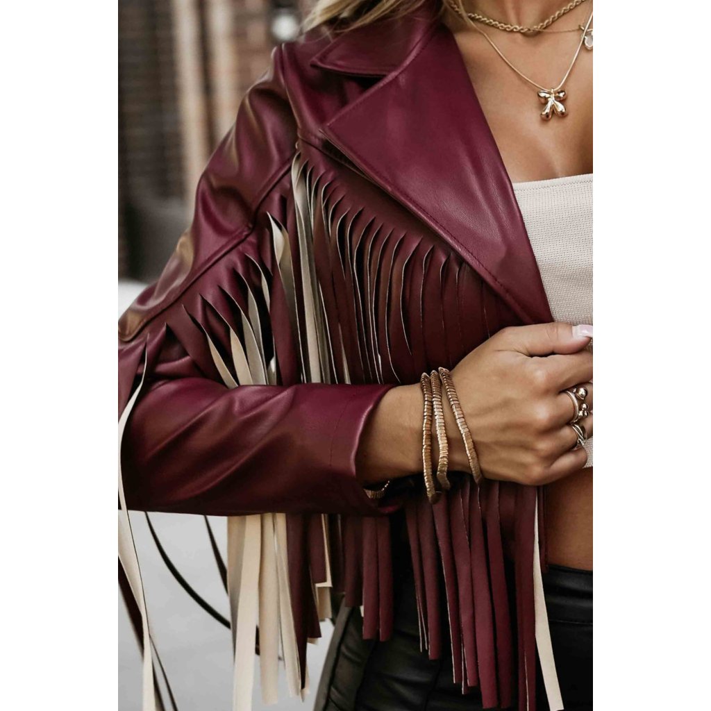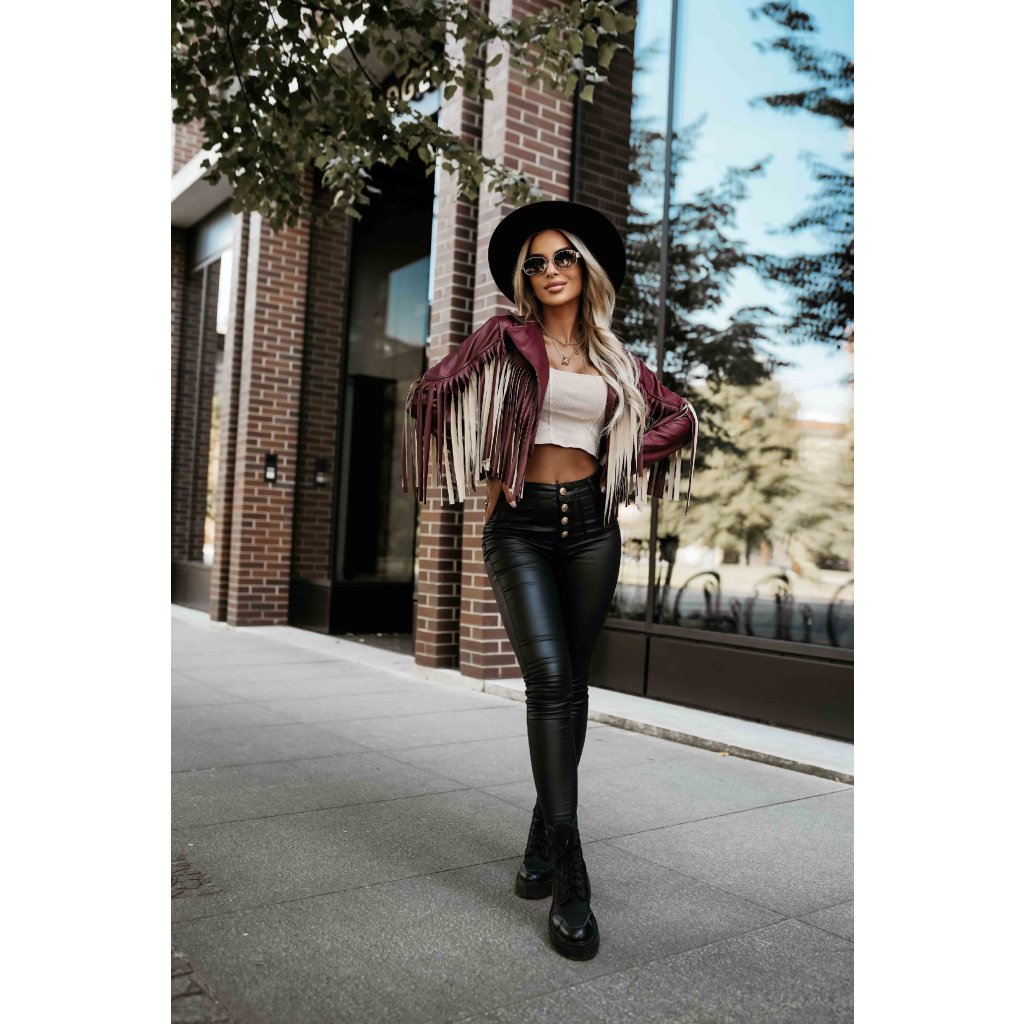 Numoco Krátká bunda s třásněmi z měkké ekokůže - vínová 624-2