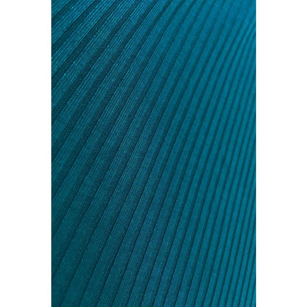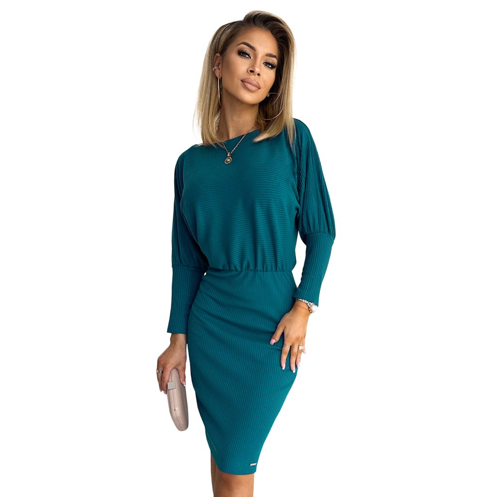 Lara - Žebrované šaty s manžetami na rukávech. Barva moře. Vyrobeno z příjemného na dotek, pružného materiálu. Polská výroba. Značka Numoco.