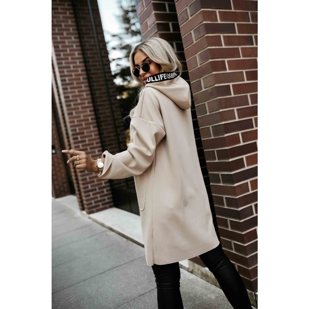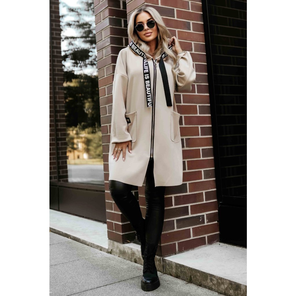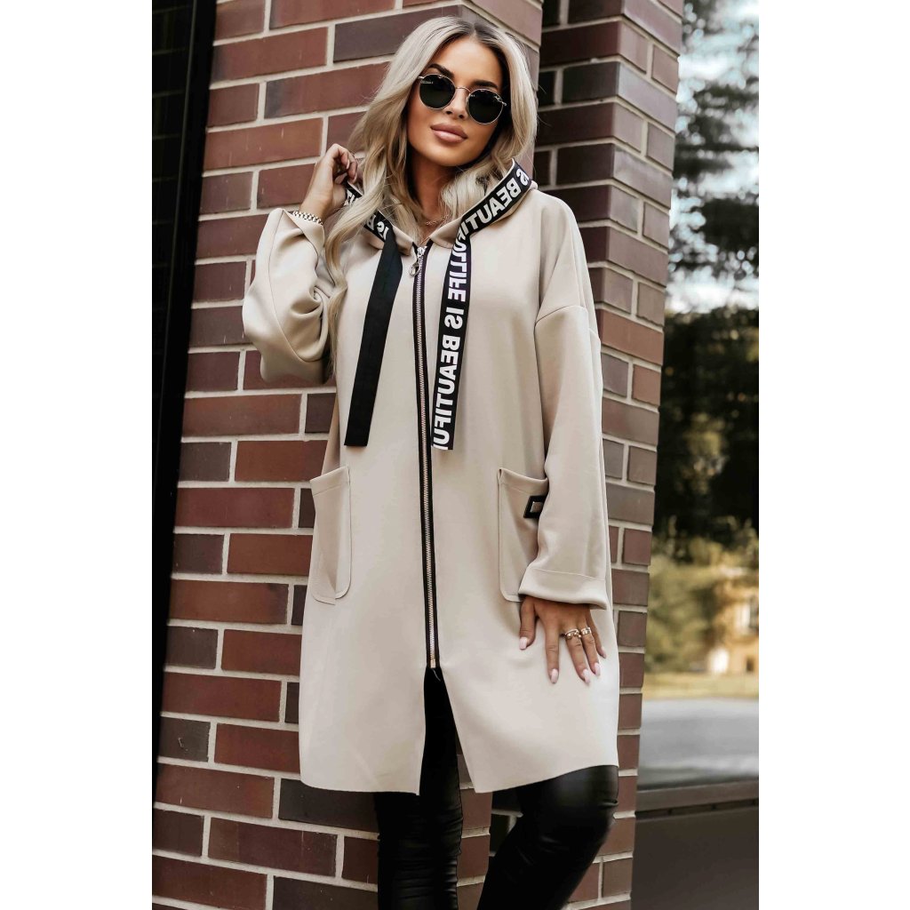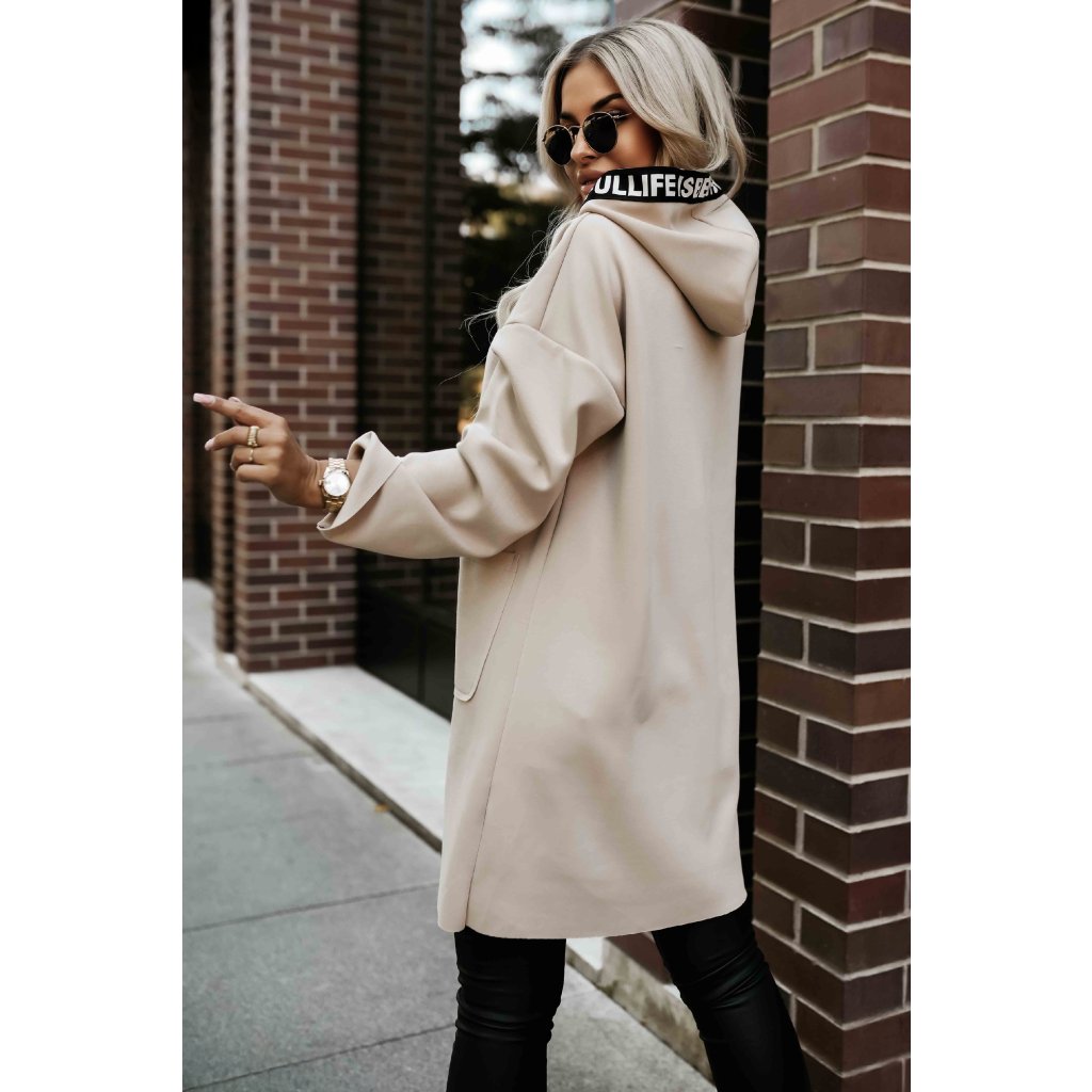 Numoco Ležérní kabát s kapsami a kapucí - béžový 632-1