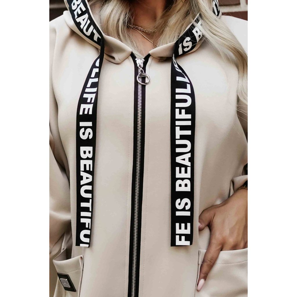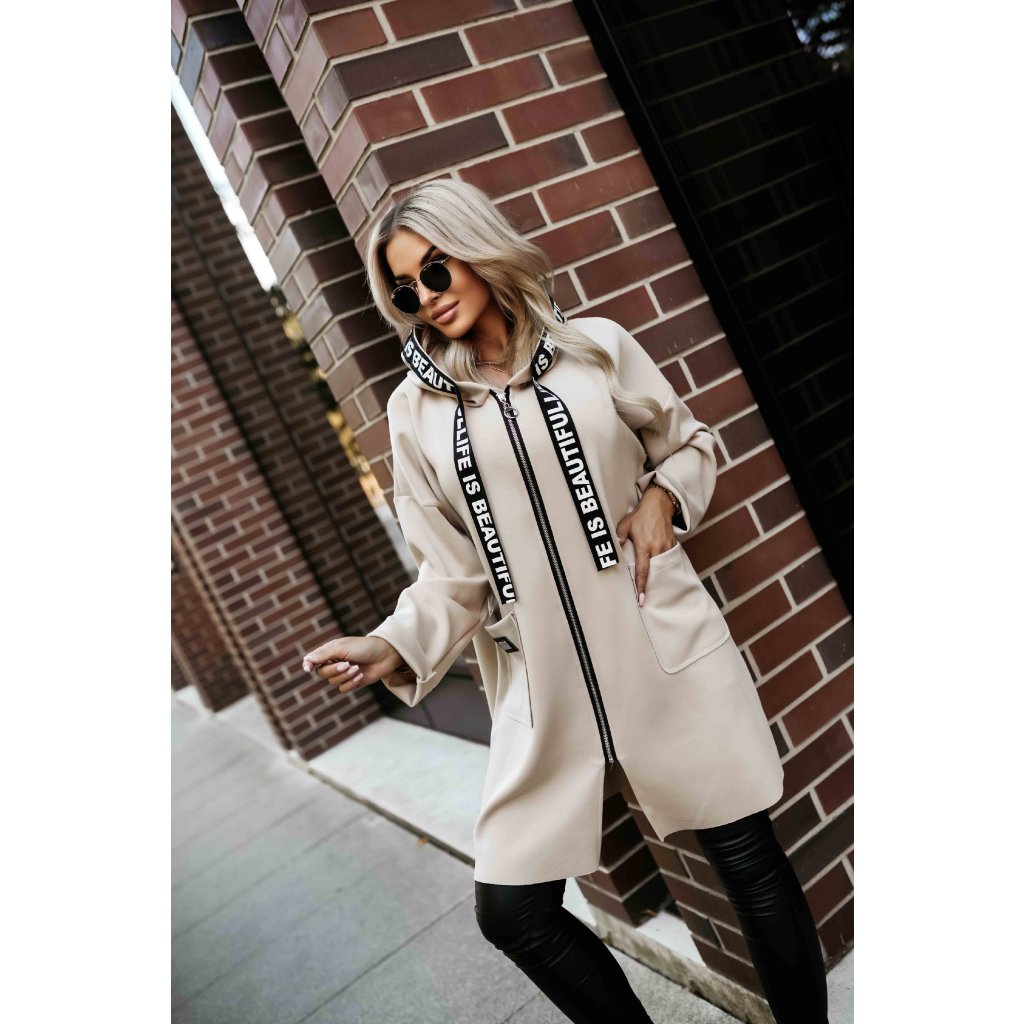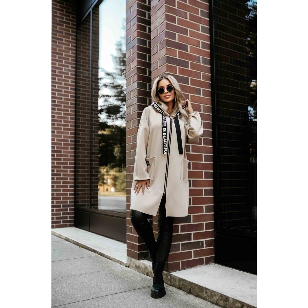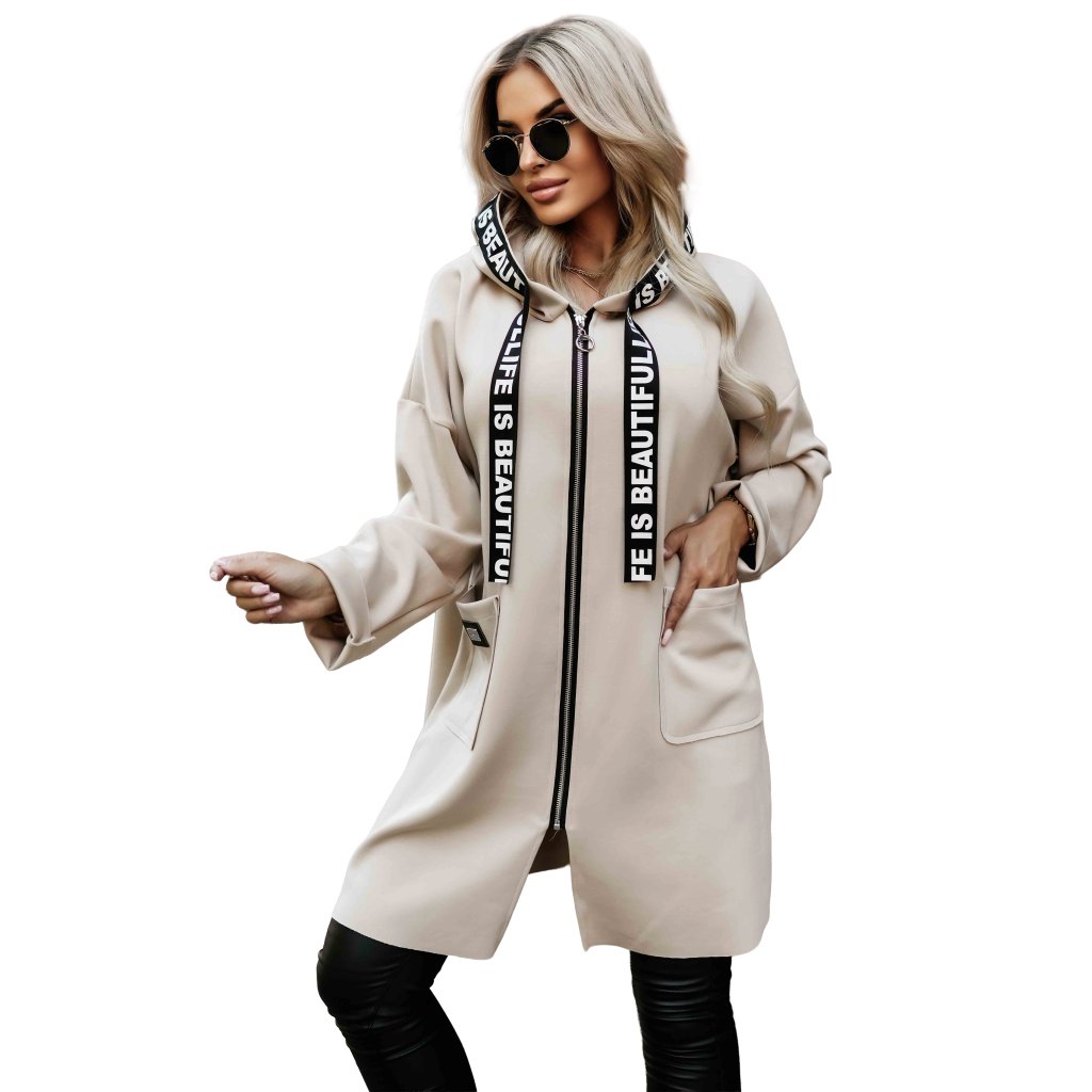 Numoco Ležérní kabát s kapsami a kapucí - béžový 632-1
