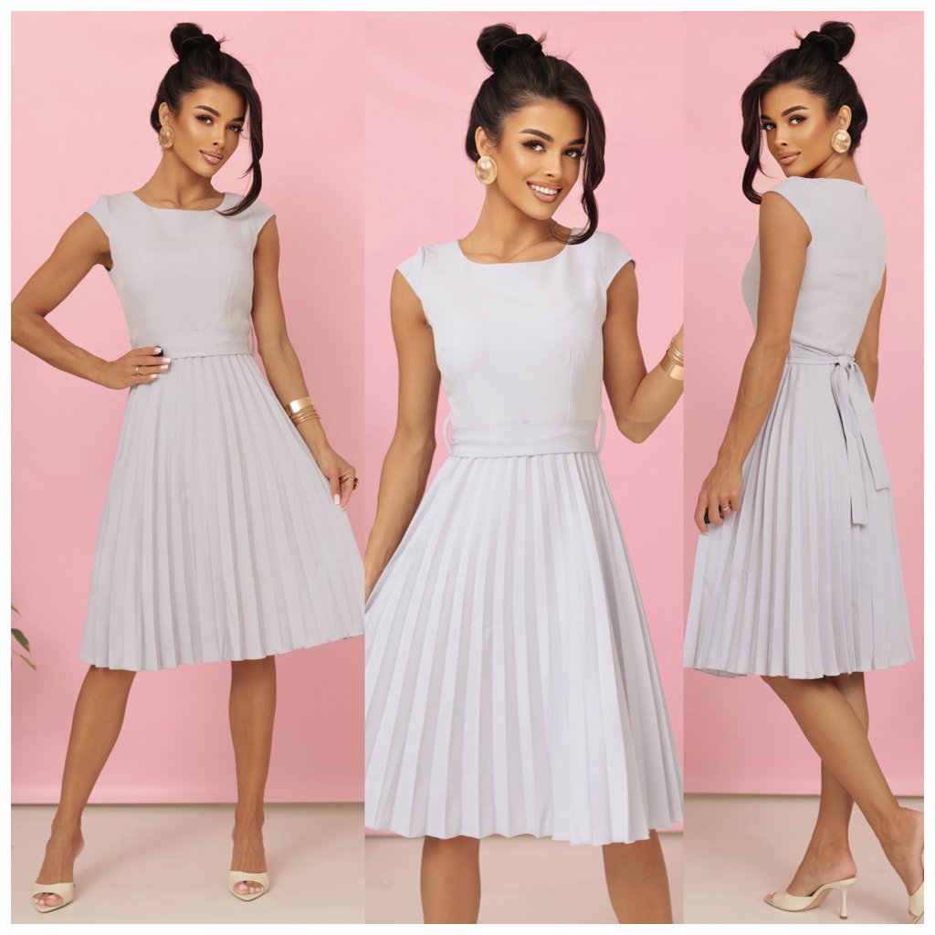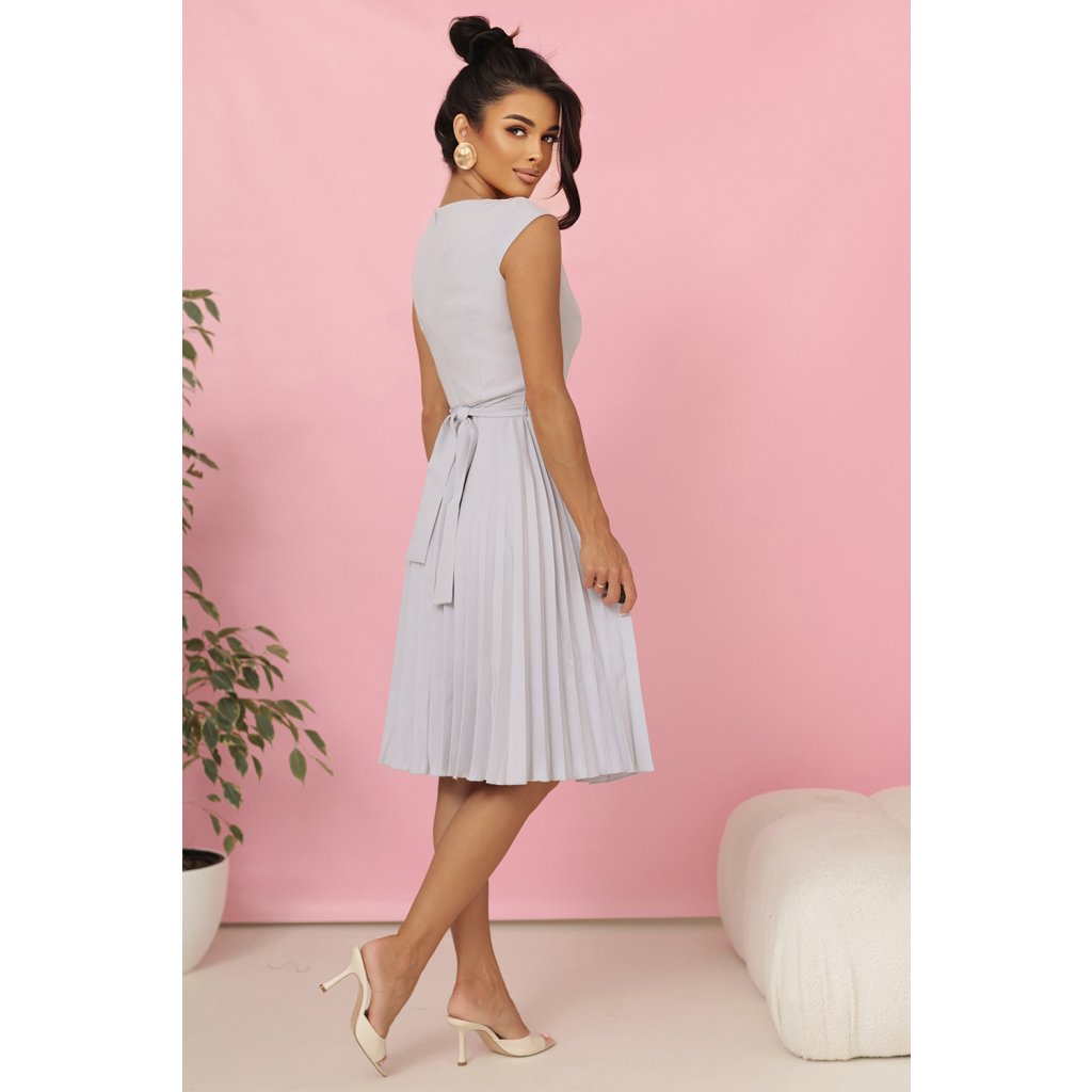 Numoco LILA Plisované šaty s krátkým rukávem a páskem - šedé 311-20