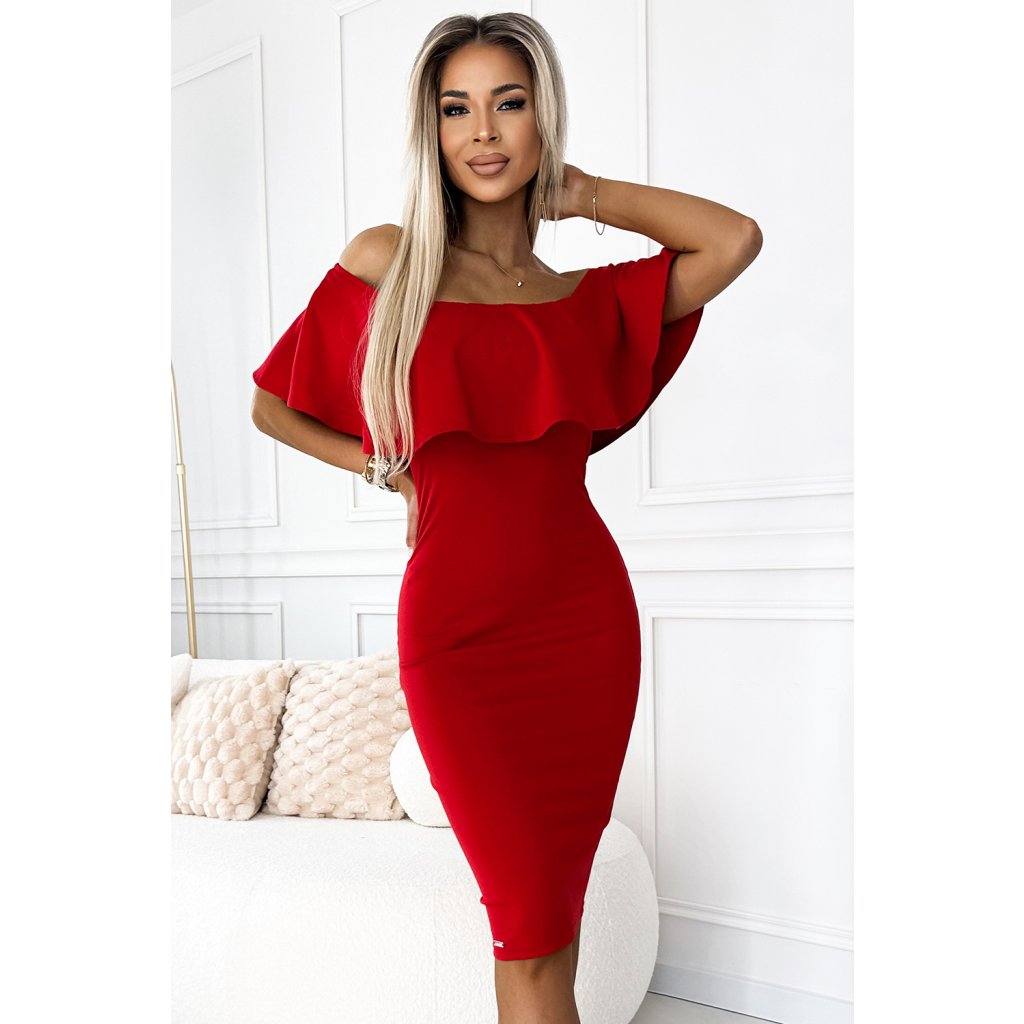 Marbella - tužkové šaty s volánky - španělská chřipka. Zapínání na boku na skrytý zip. Vyrobeno ze silnějšího pružného červeného materiálu. Značka numoco. Polská výroba.