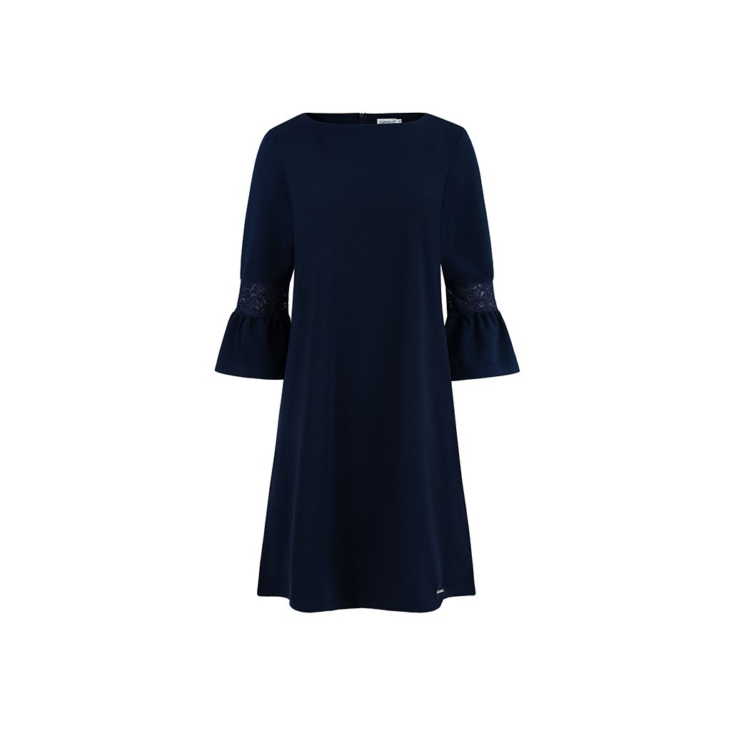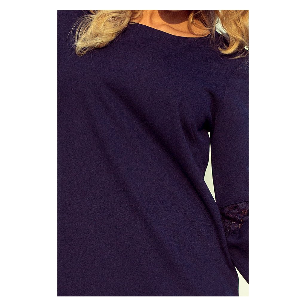 MARGARET šaty s rozšířenými rukávy a krajky vložky - velmi komfortní - tmavě modrá. Značka numoco. Produkce Polsko.