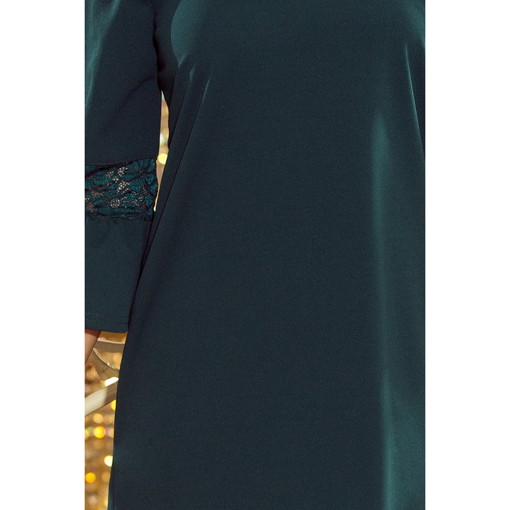MARGARET šaty s rozšířenými rukávy a krajky vložky - velmi komfortní - tmavě zelená. Značka numoco. Produkce Polsko.