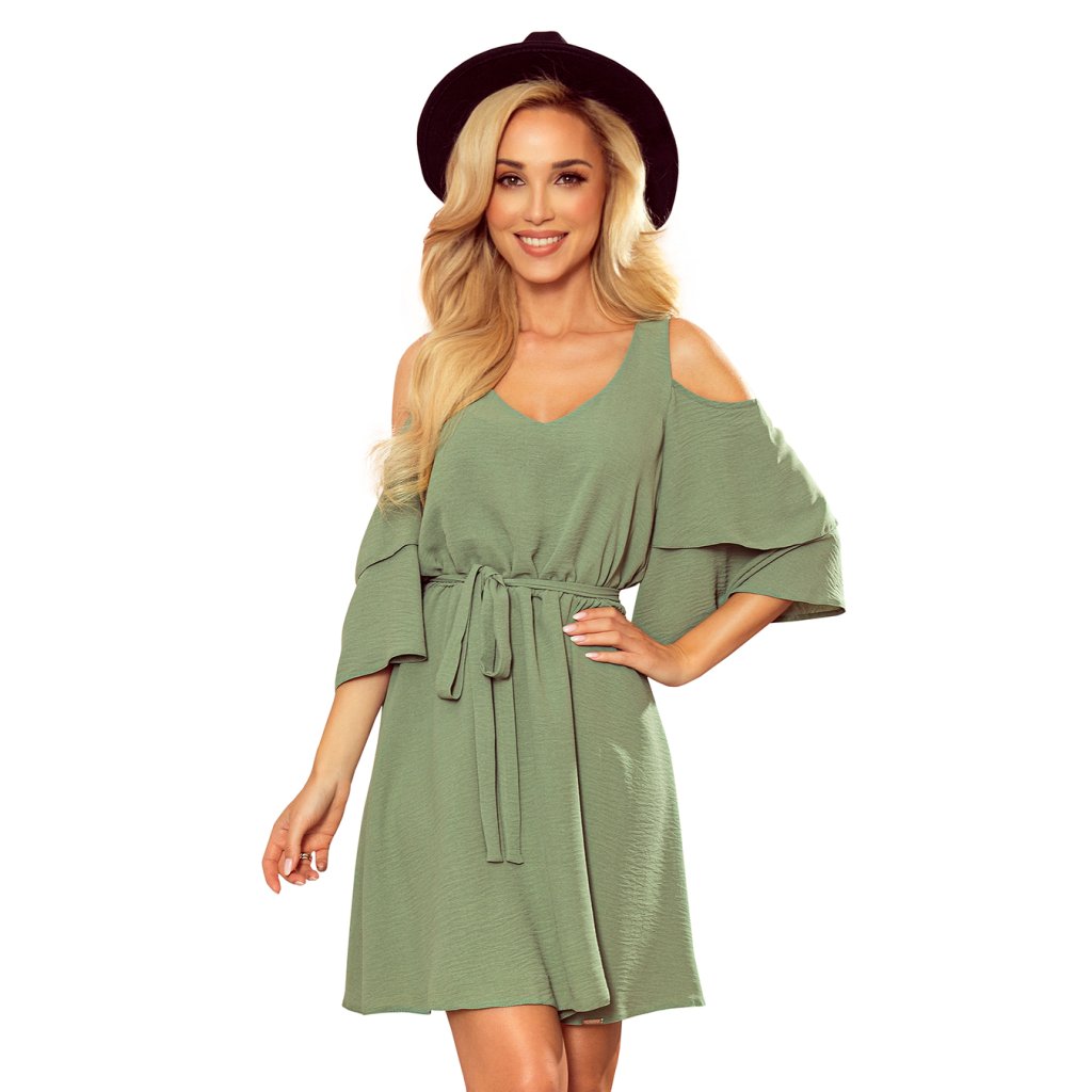Numoco MARINA šaty s výstřihem - olivová barva 292-6