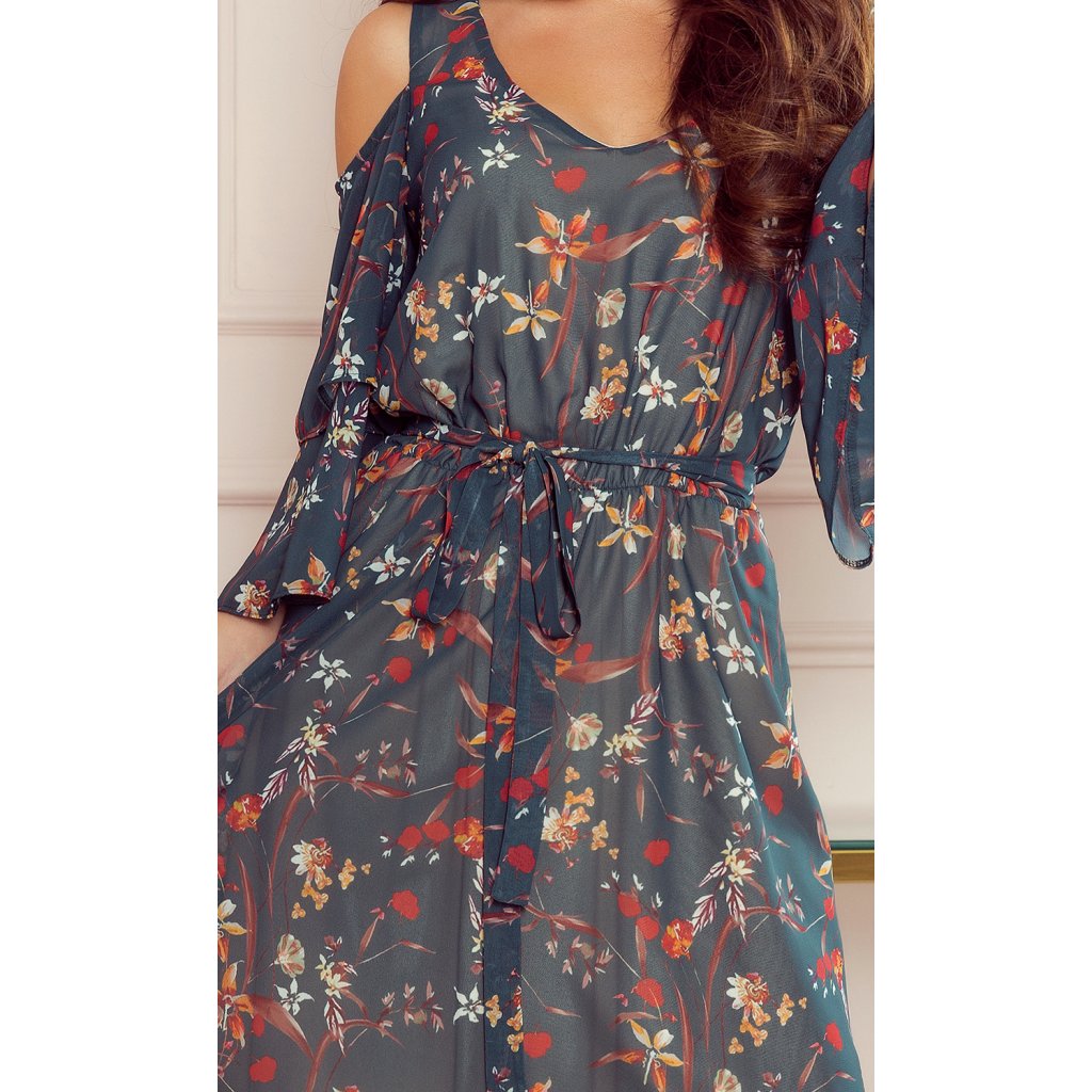 Numoco MARINA šaty s výstřihem - zelené s květinami 292-2