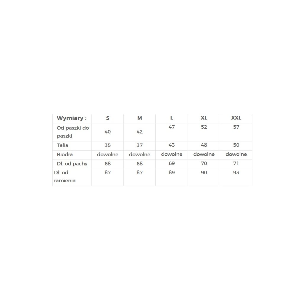 | Length from armpit | 68 | 68 | 69 | 70 | 71 |