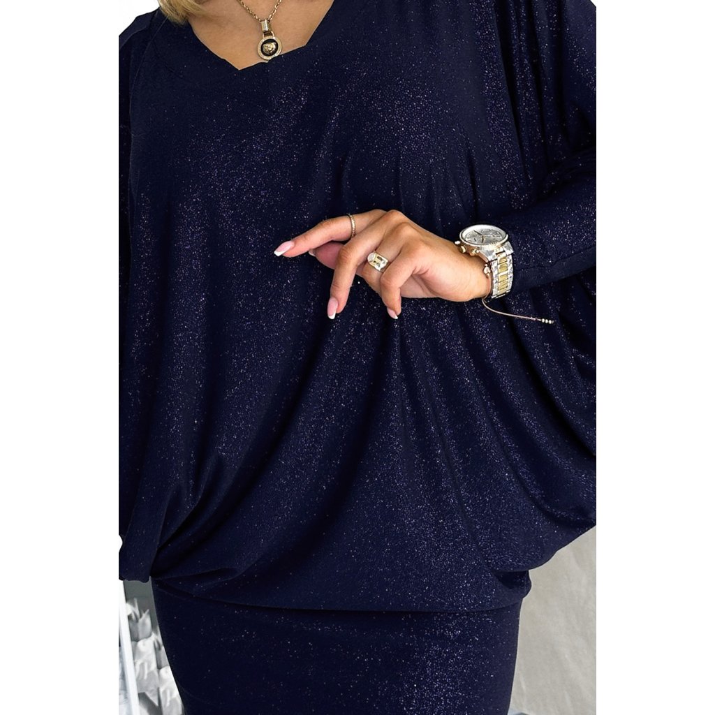Numoco Netopýří šaty s výstřihem - tmavě modrá se třpytkami 402-1