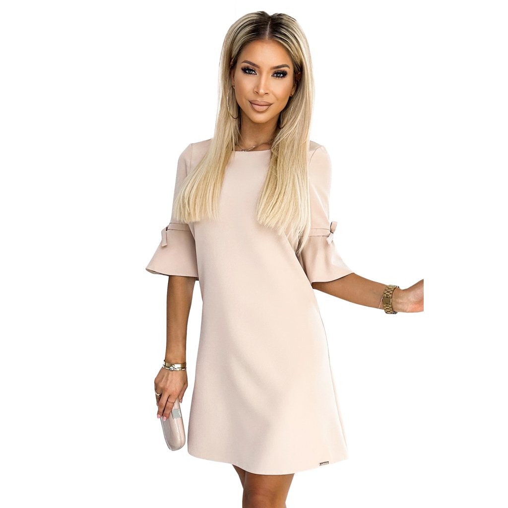 Numoco NEVA Trapézové šaty s mašlí - béžové 217-7