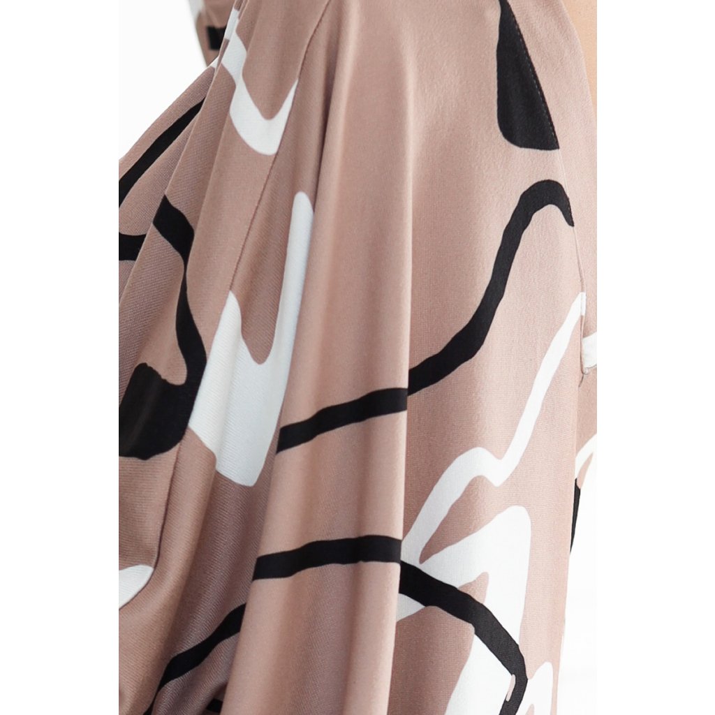 Numoco Pohodlné netopýří šaty s výstřihem - béžové s černobílým vzorem 402-8