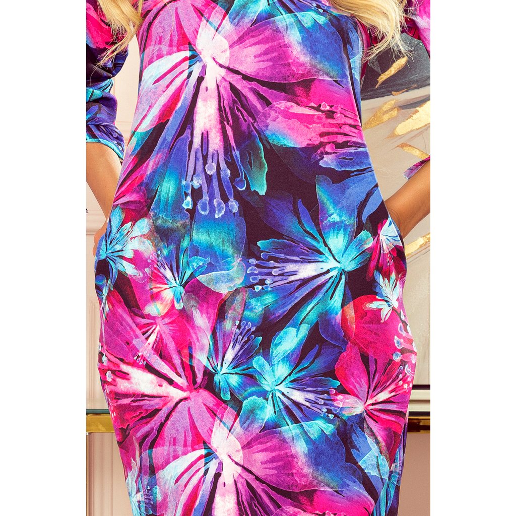 Numoco Pohodlné šaty OVERSIZE - modré a růžové květy 323-1