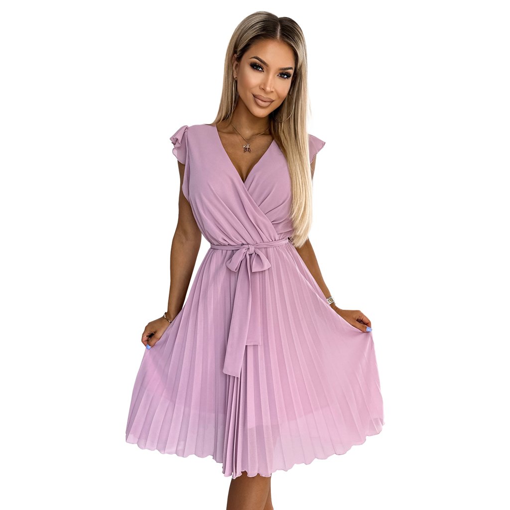 Numoco POLINA Plisované šaty s výstřihem a volány - špinavě růžové 374-3