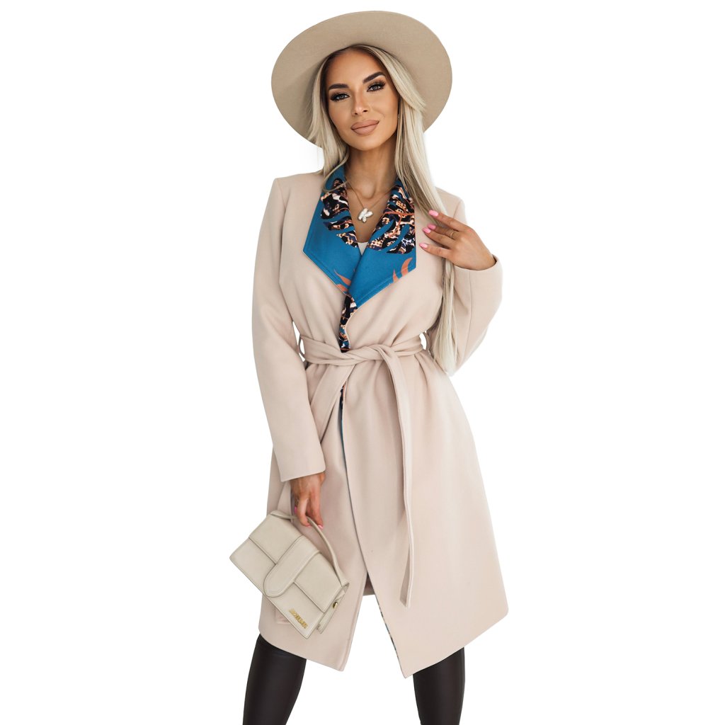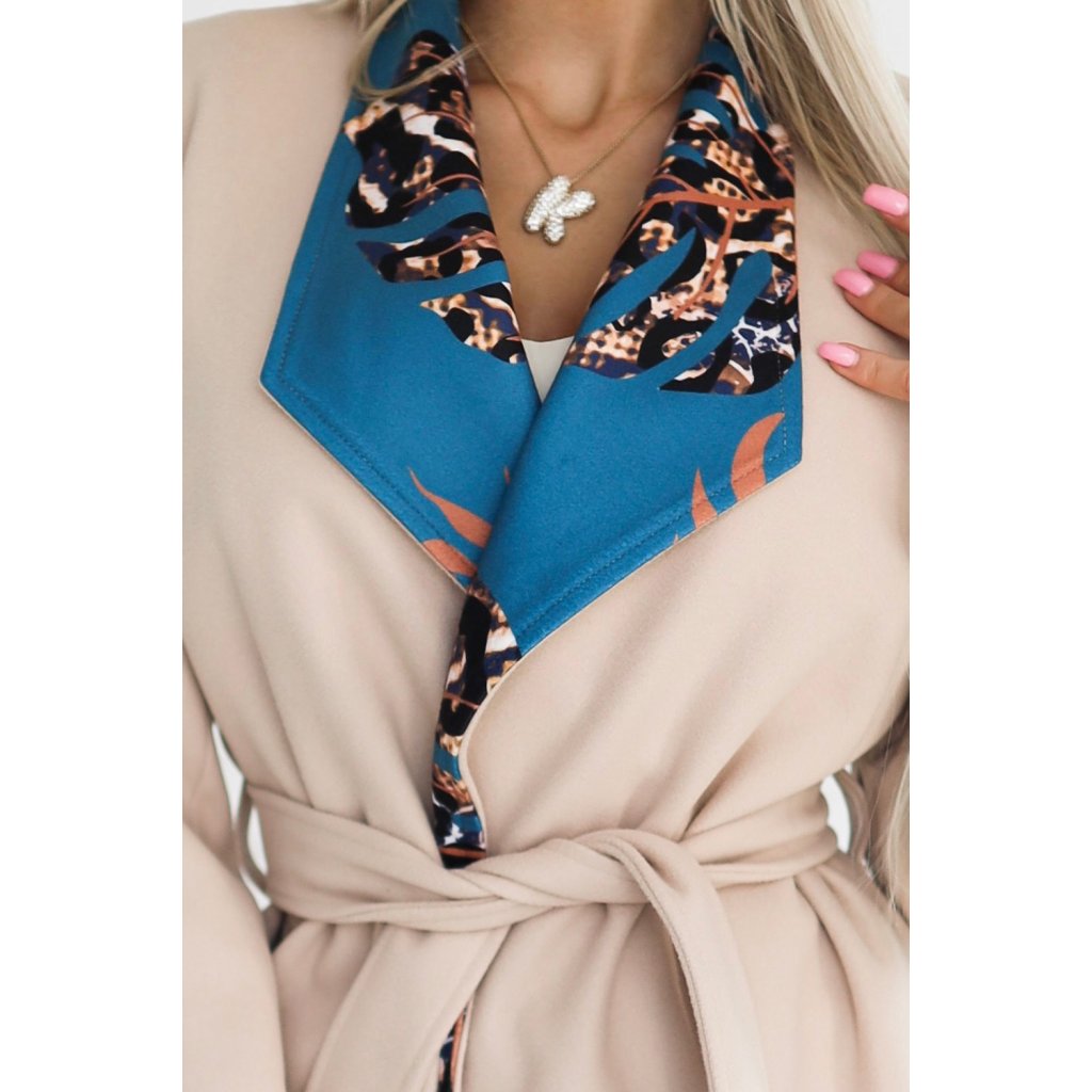 Numoco Polský pohodlný kabát s barevnou vsadkou u límce - béžová 582-1