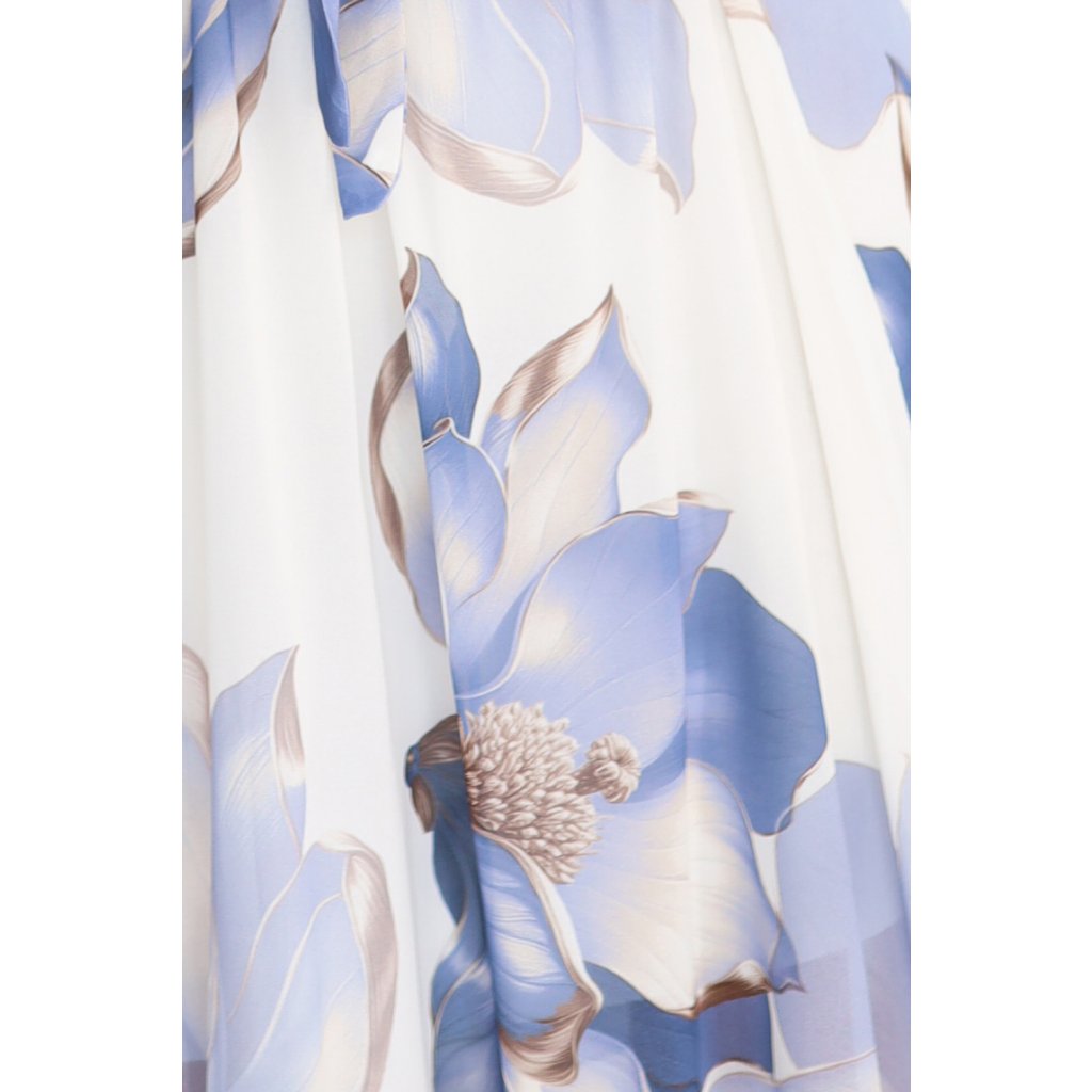 Numoco Romantické šaty s výstřihem do obálky a vzdušnými rukávy - modré květy na bílém pozadí 602-1