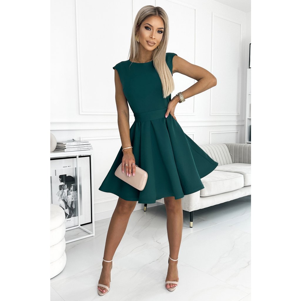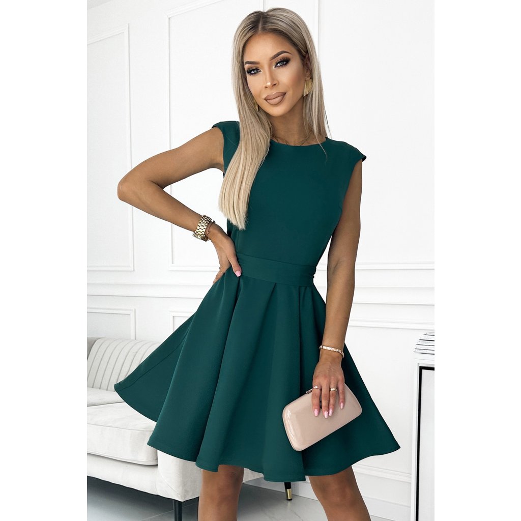 Numoco Rozevláté šaty s malými rukávy - zelené 442-1