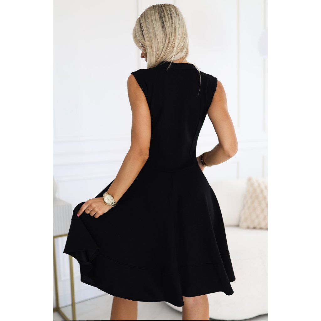 Rozevláté šaty značky Numoco se zipem vpředu v elegantní černé barvě. Vyrobeno z elastické, silnější tkaniny, která zajišťuje pohodlí a perfektně sedí na postavě. Polský výrobek, ideální pro různé příležitosti.
