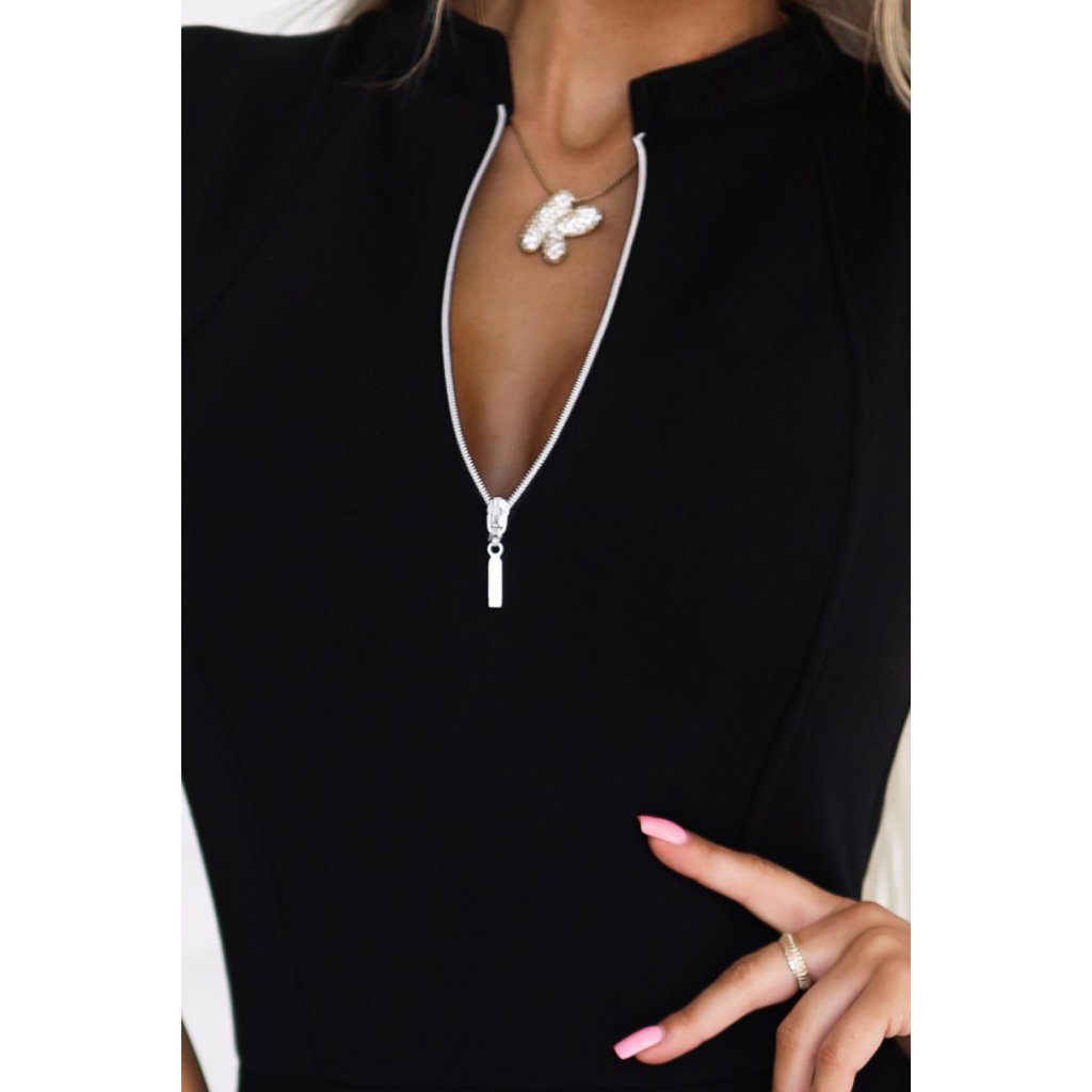 Numoco Rozevřené šaty se zipem vpředu - černé 573-1
