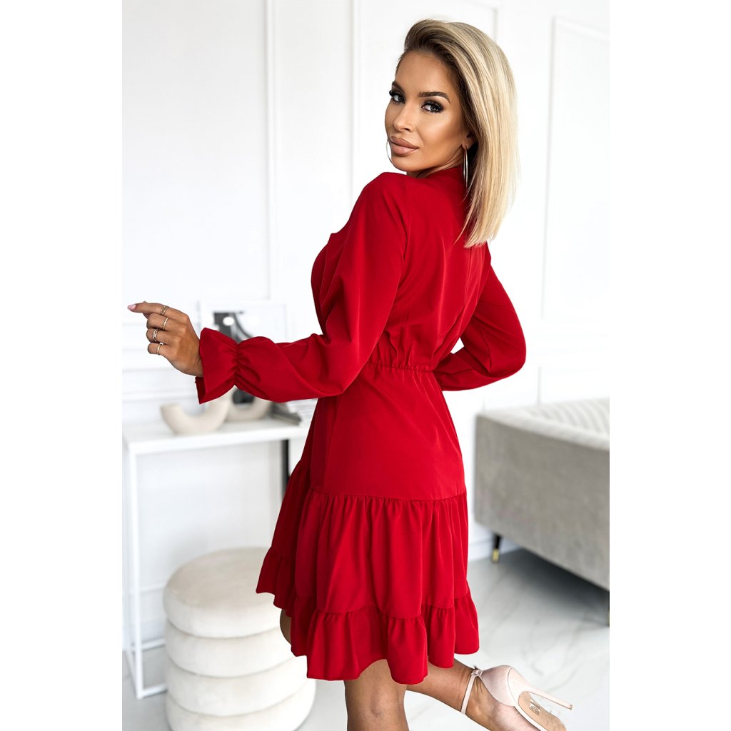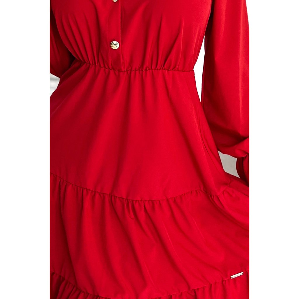 Numoco Šaty s výstřihem a zlatými knoflíky - červené 395-1