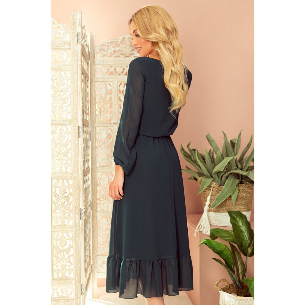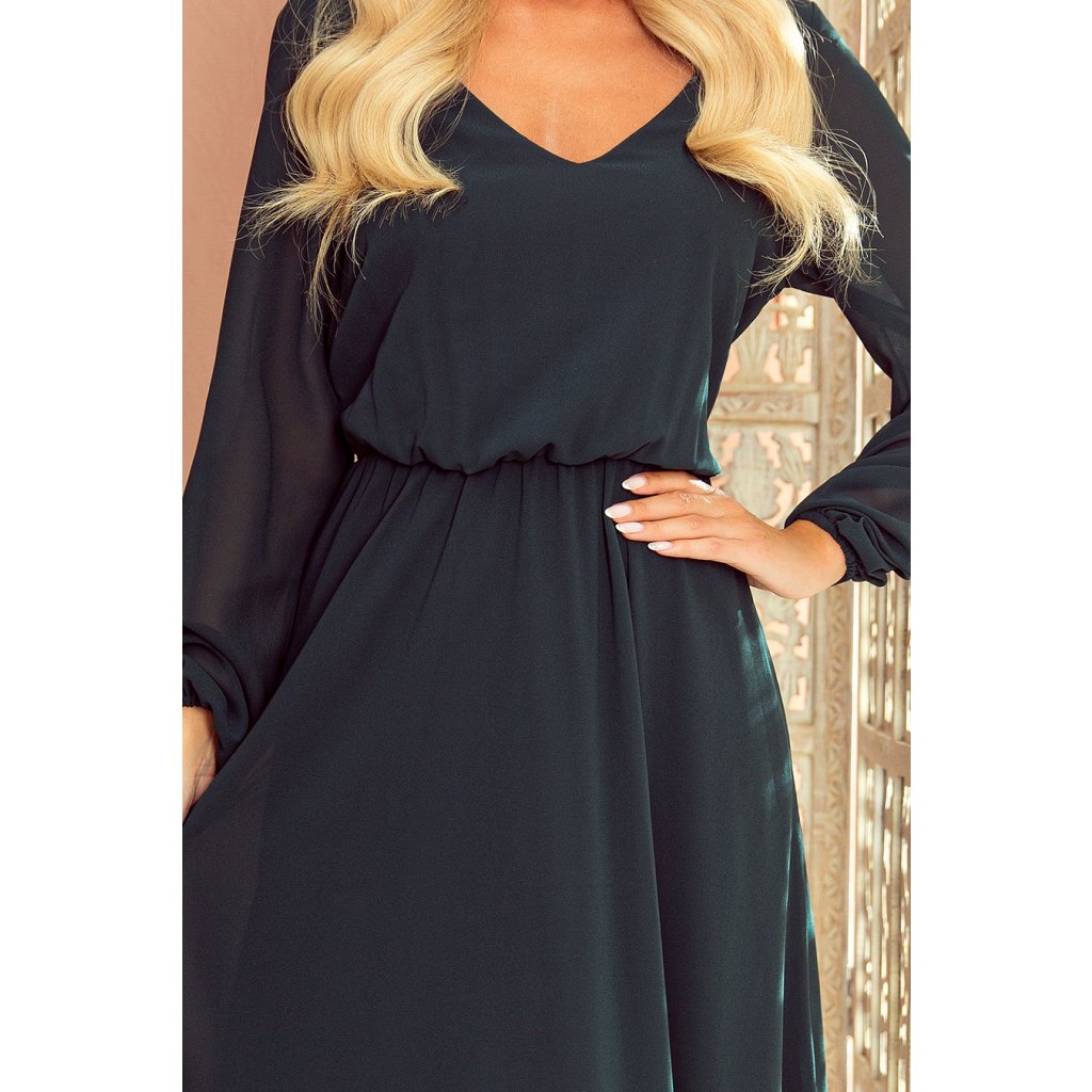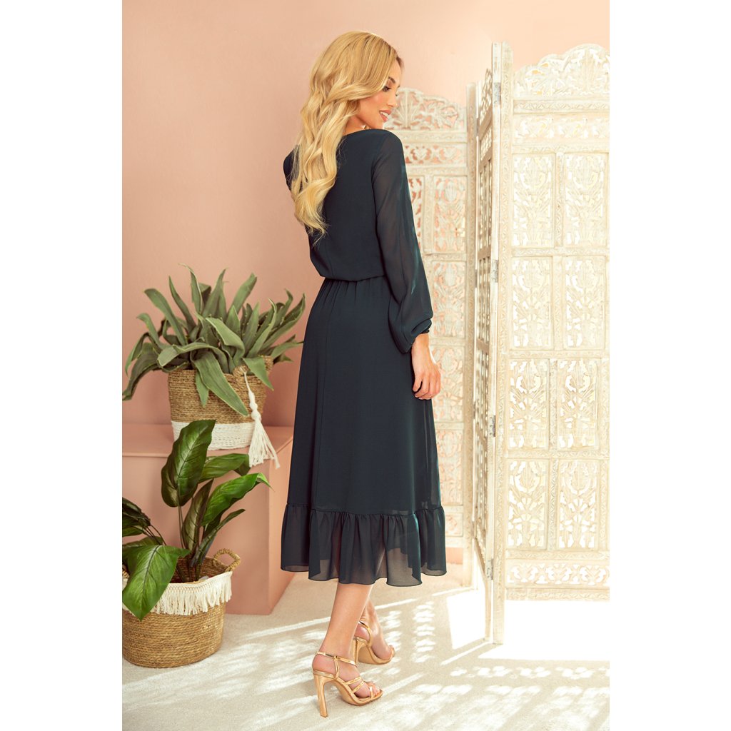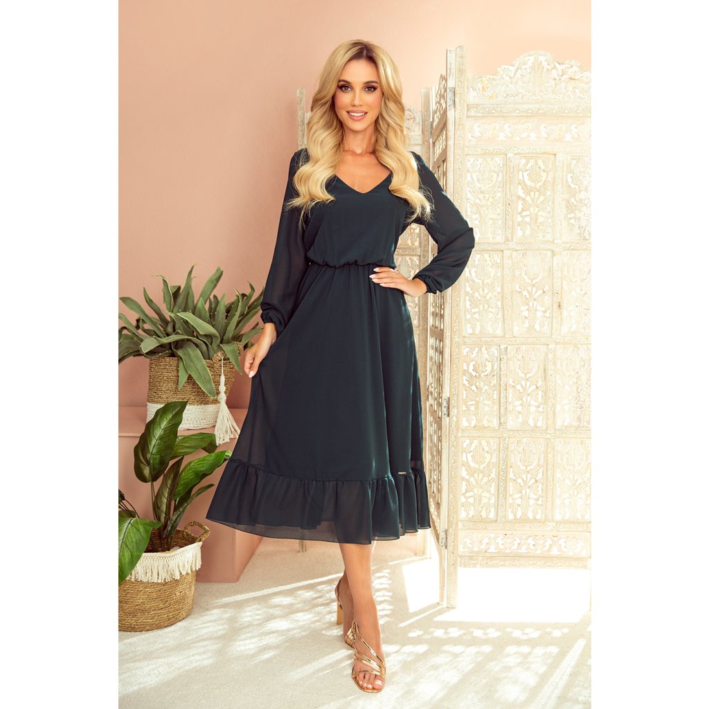 Numoco Šifónové midi šaty s výstřihem a límcem - zelené 304-2
