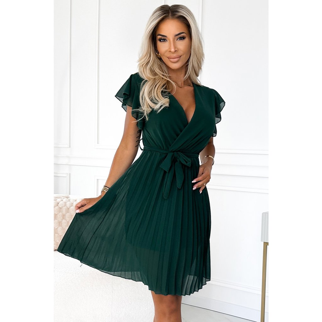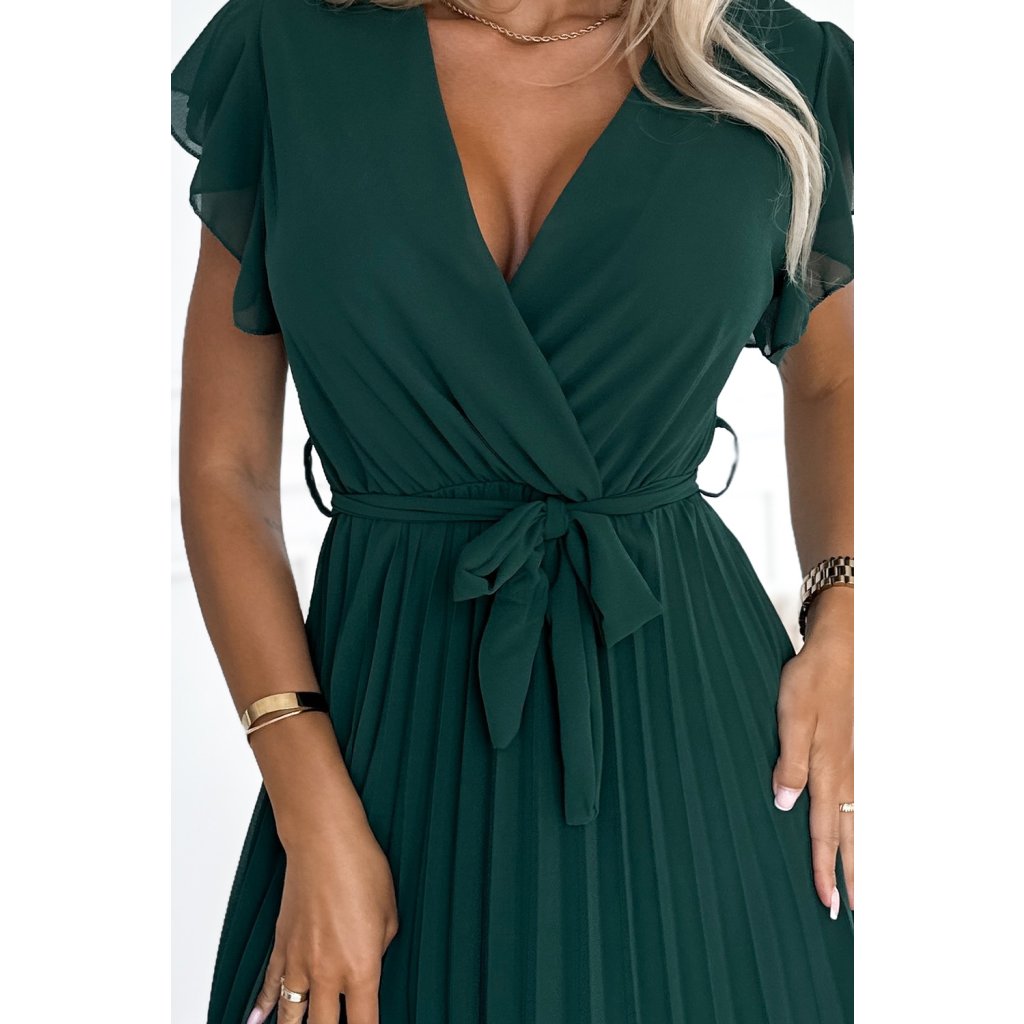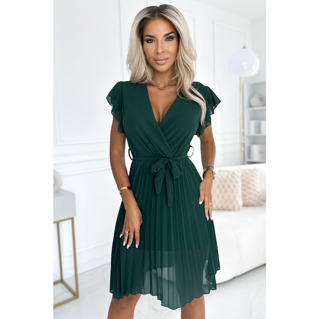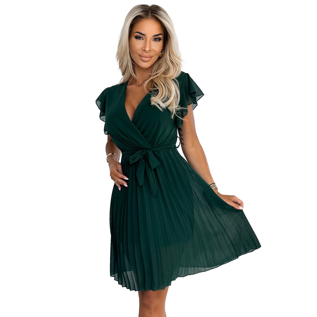 Numoco Šifonové řasené šaty s výstřihem a volány - zelené 424-6
