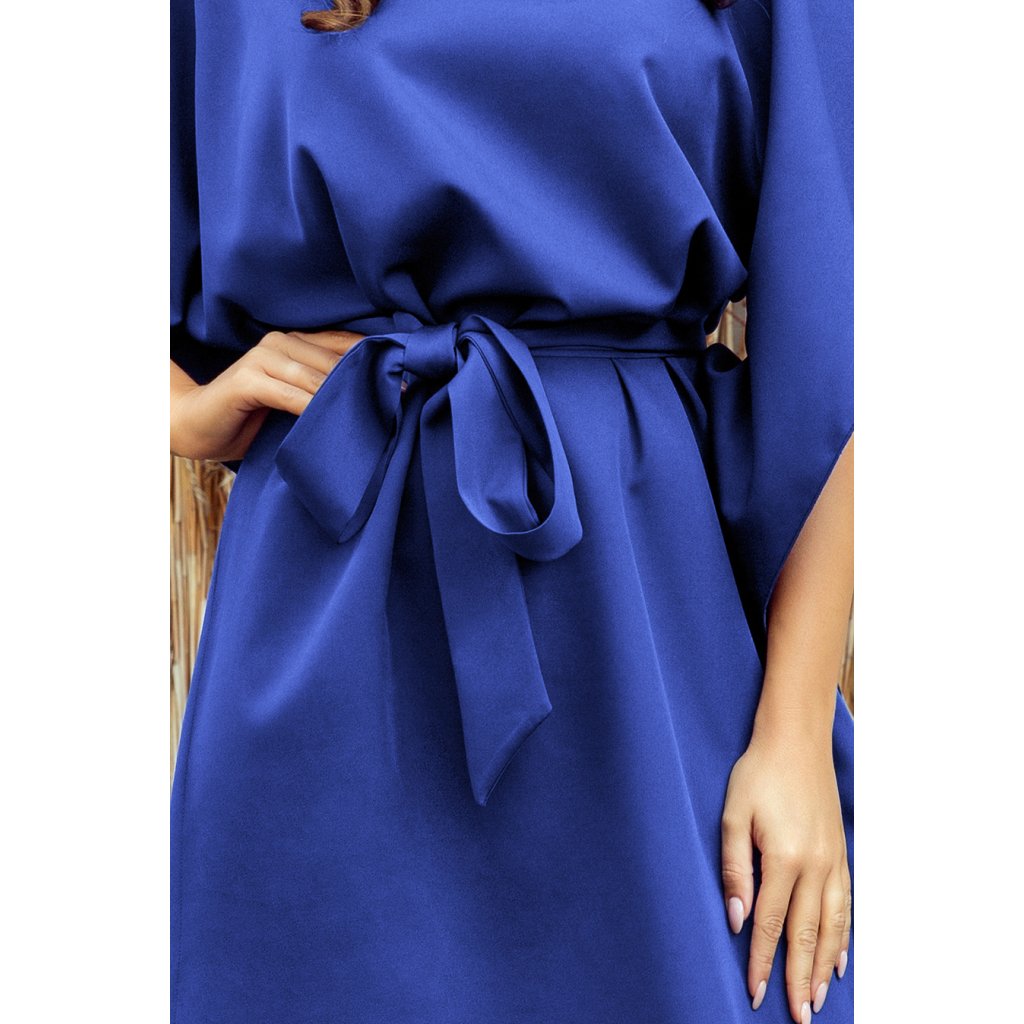 SOFIA Motýlí šaty s páskem - modrá barva. Značka Numoco. Polská výroba.