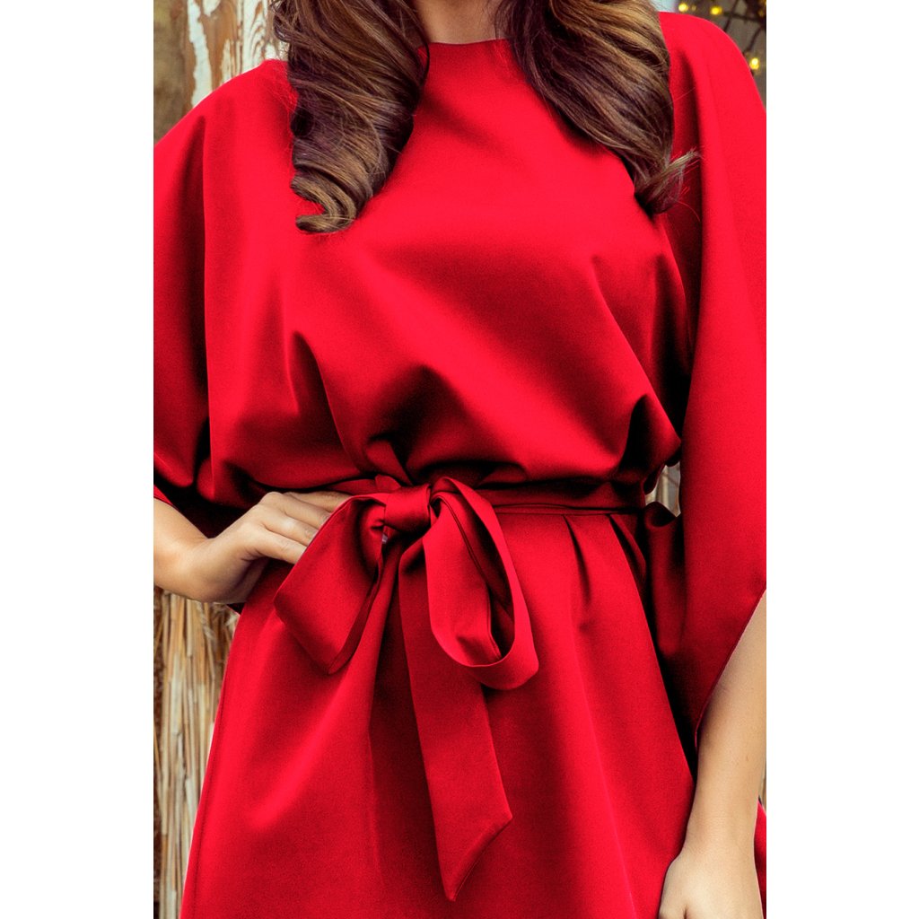 SOFIA Motýlkové šaty s opaskem - červené. Polská produkce. Značka numoco.