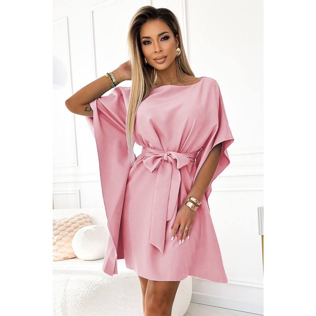SOFIA Motýlkové šaty s opaskem - špinavá růžová. Polská produkce. Značka numoco.