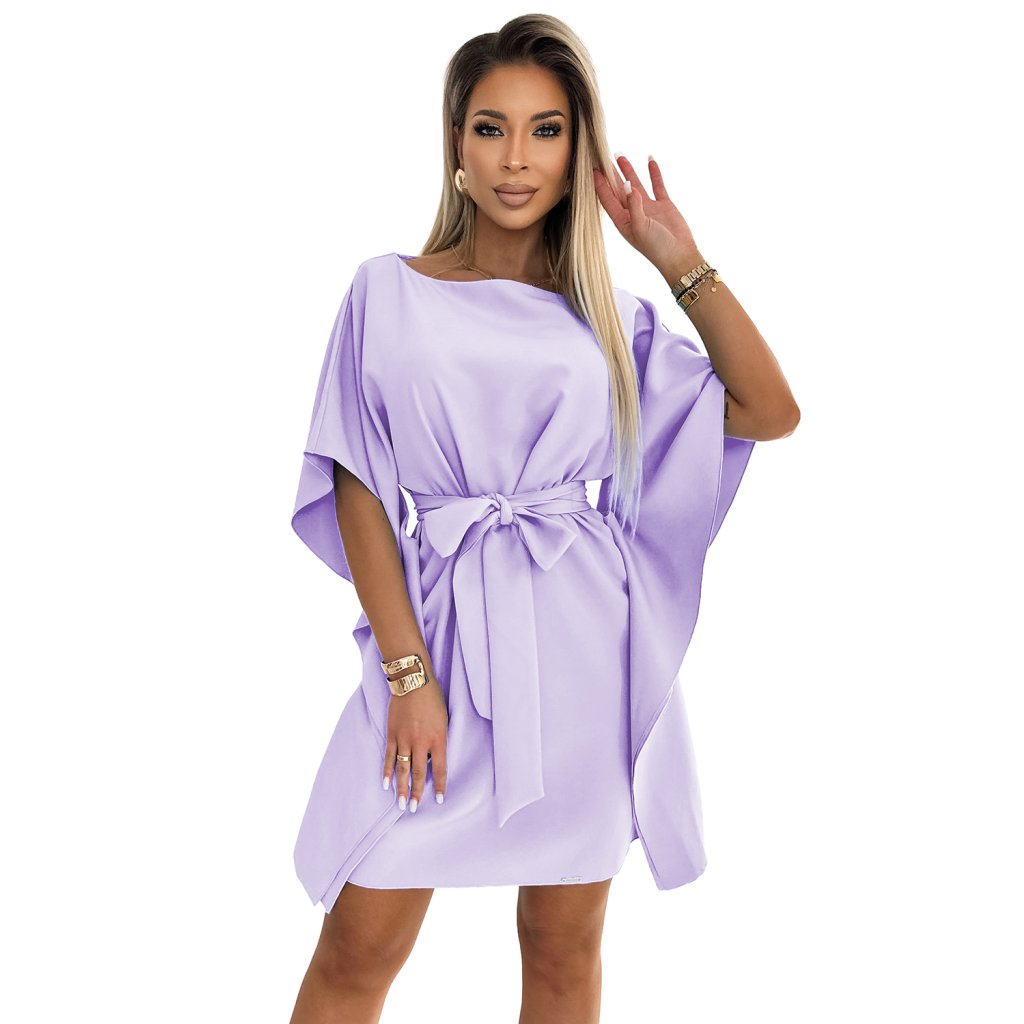 SOFIA Motýlkové šaty s opaskem - světlé vřes. Polská produkce. Značka numoco.