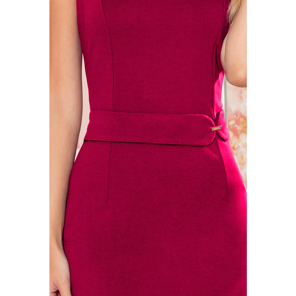 Tamara - Elegantní midi šaty s pásem a krátkým rukávem - Vínová barva. Vyrobeno z příjemné na dotek, lehce elastický materiál bez podšívky. Připíná se vzadu zakrytým zipem. Značka Numoco. Polský produkt.
