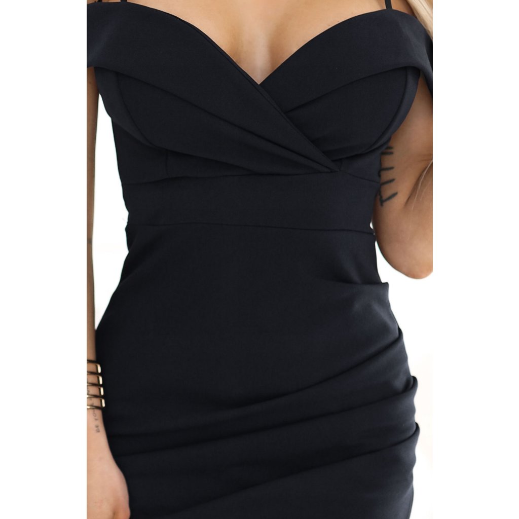 Černé midi šaty s odhalenými rameny - smyslná elegance | Numoco Basic