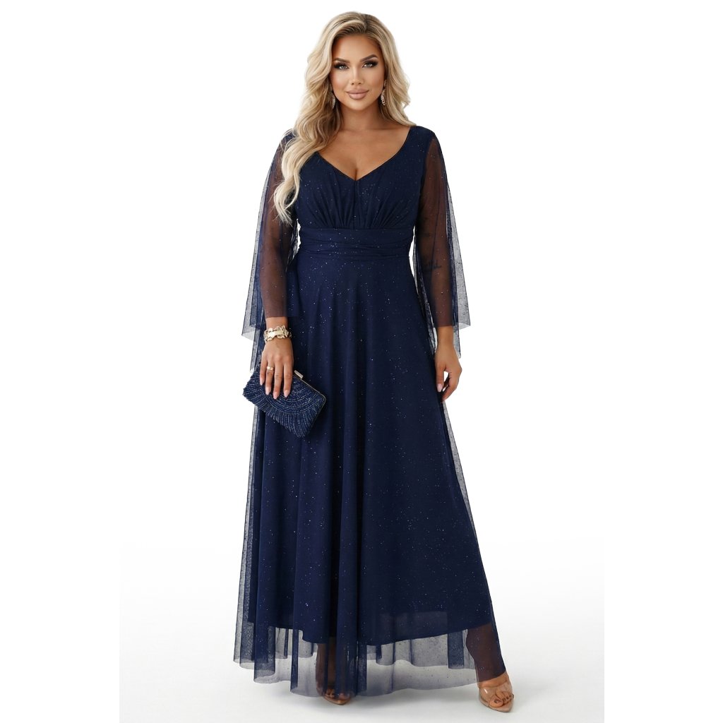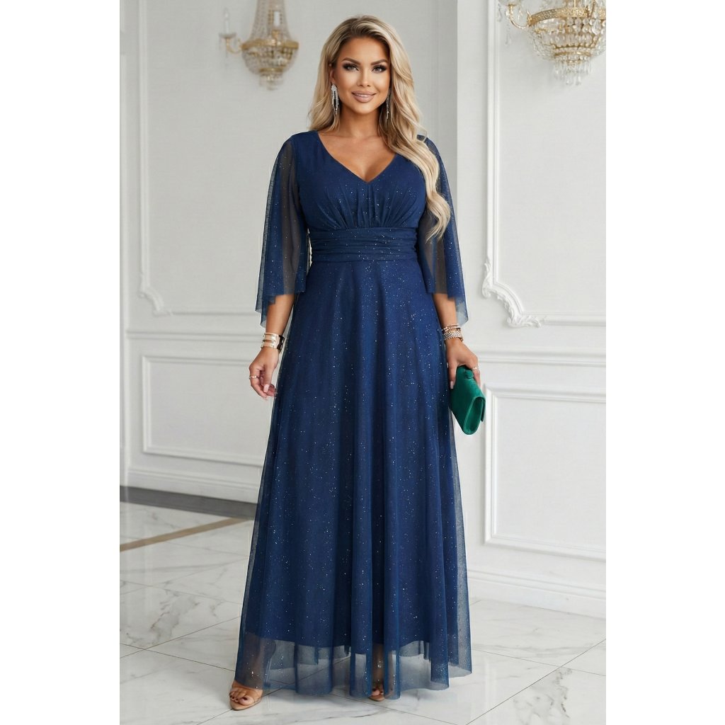 Pokud hledáte námořnicky modrá maxi šaty na svatbu, večerní kreaci ve velikosti plus size nebo elegantní šaty na karneval, které zdůrazňují pas a maskují drobné nedokonalosti - tento model splní všechna tato očekávání.