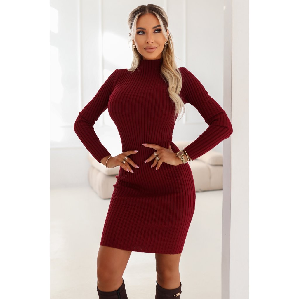 Numoco Elegantní přiléhavé rolákové šaty, které krásně zdůrazňují siluetu - vínové 652-1