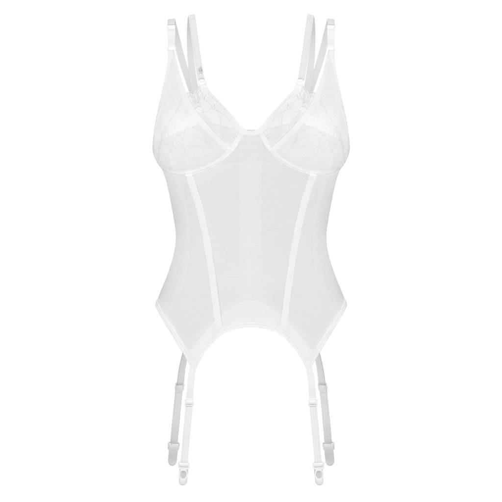 Gorset marki Obsessive. Model Arrowel corset. Produkt został wykonany z 94% poliamid, 6% elastan. Miejsce zapięcia: tył. Posiada druty, które podpierają piersi odpowiednio je kształtując. Haczyki do ramiączek metalowe. Produkt posiada regulowane ramiączka. Gorset zapinany na haftki. Produkt damski.Doplňkové parametry