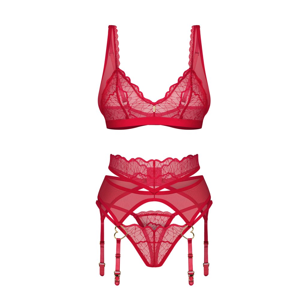 Obsessive Cupide Desir 3-pcs set- -podprsenka + tanga + podvazkový pás
