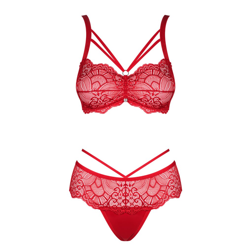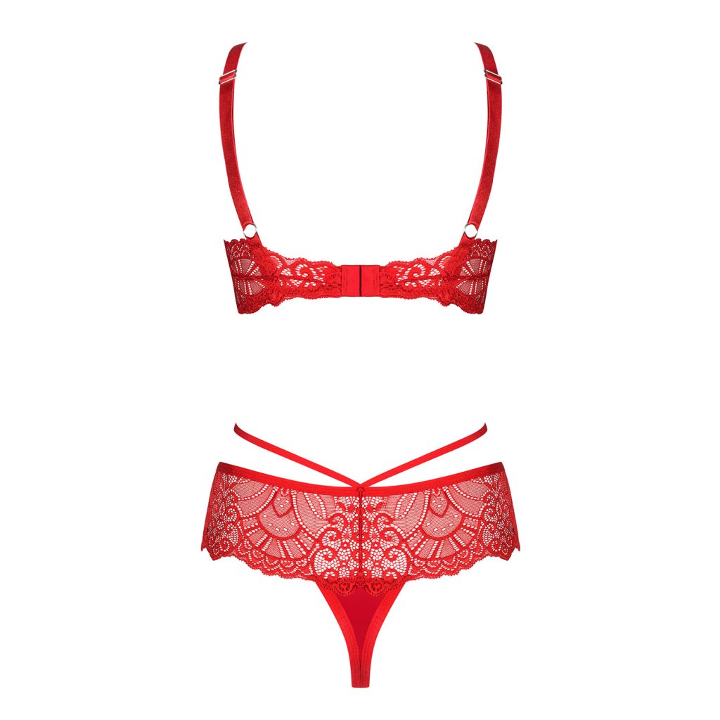 Nocna marki Obsessive. Model Loventy 2-pcs set. Produkt został wykonany z 90% poliamid, 10% elastan. Haczyki do ramiączek metalowe. Miejsce zapięcia: tył. Nocna zapinany na haftki. Dwa rzędy haftek pionowych. Posiada druty, które podpierają piersi odpowiednio je kształtując. Produkt posiada regulowane ramiączka. Trzy stopnie haftek poziomych. Produkt damski.Doplňkové parametry