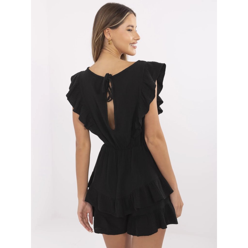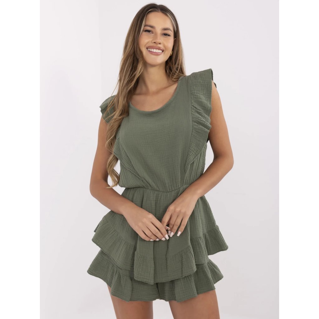 Rozměry overalu ve velikosti jedna měřeno v plochém stavu: šířka v podpaží - 58 cm, šířka v pase - 23 cm (v plochém stavu), šířka v pase - 52 cm (po natažení), šířka v bocích - 46 cm, celková délka - 84 cm.
