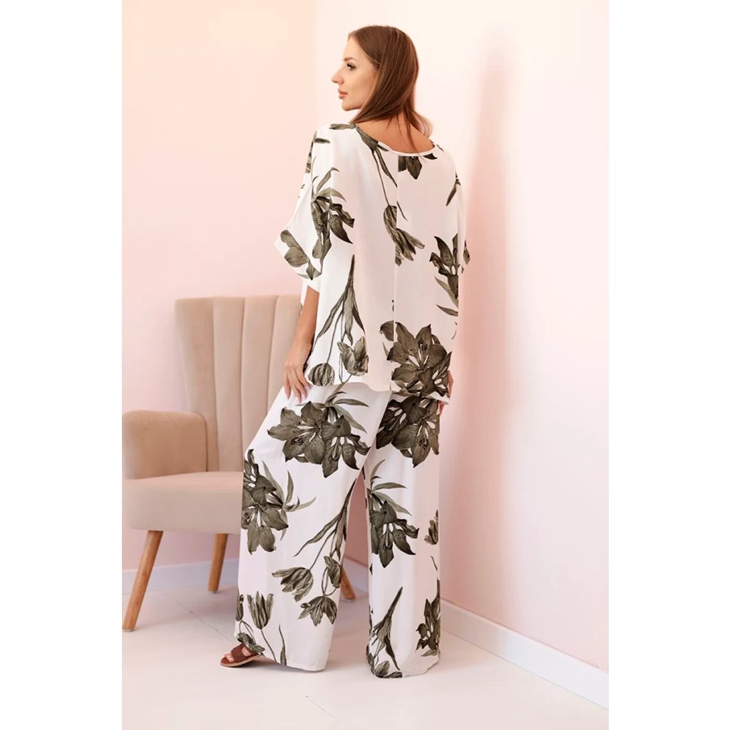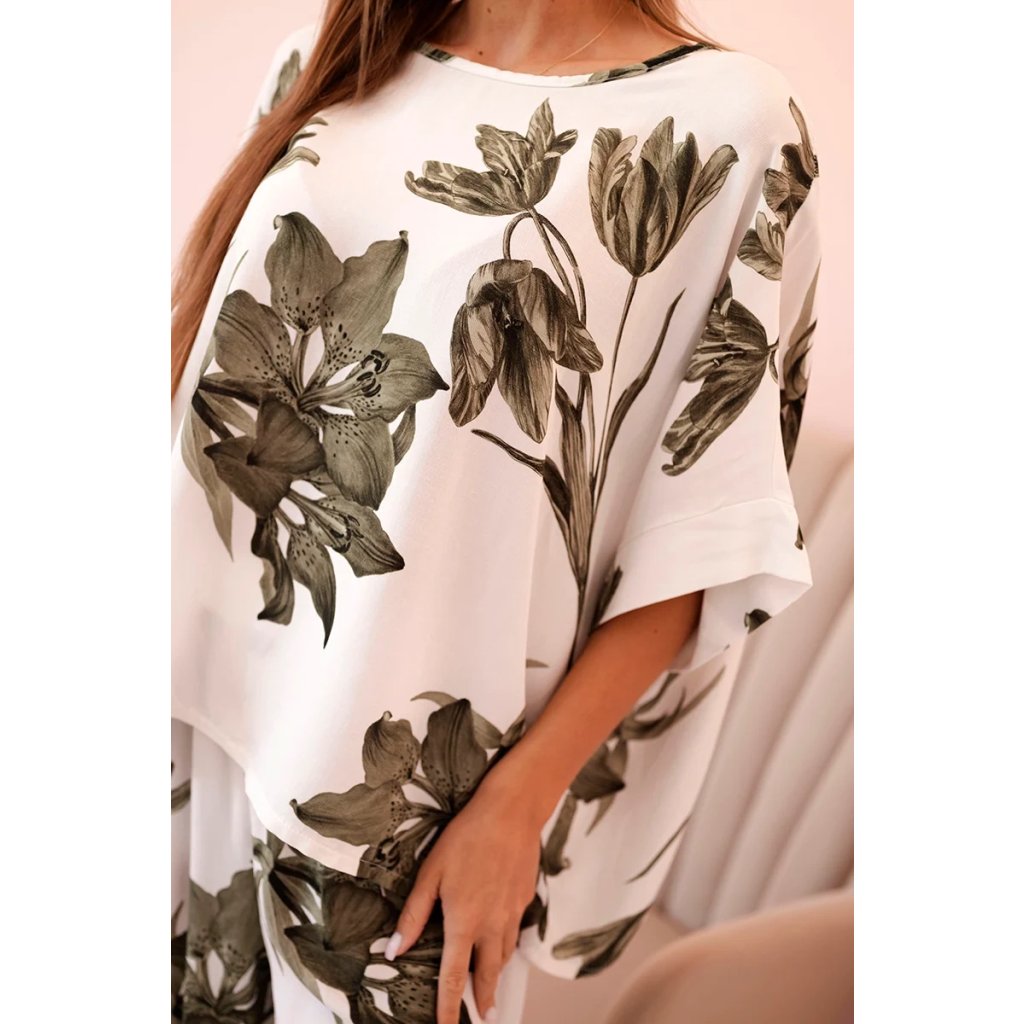 Oversize dámský komplet z viskózy s květinovým vzorem khaki