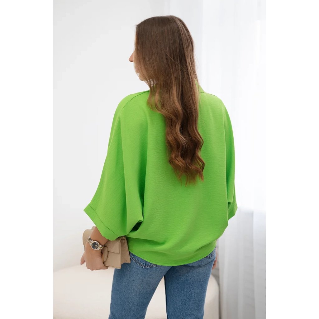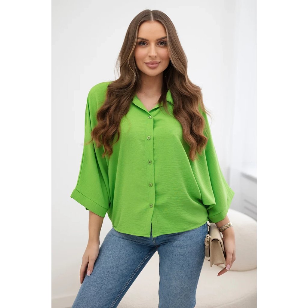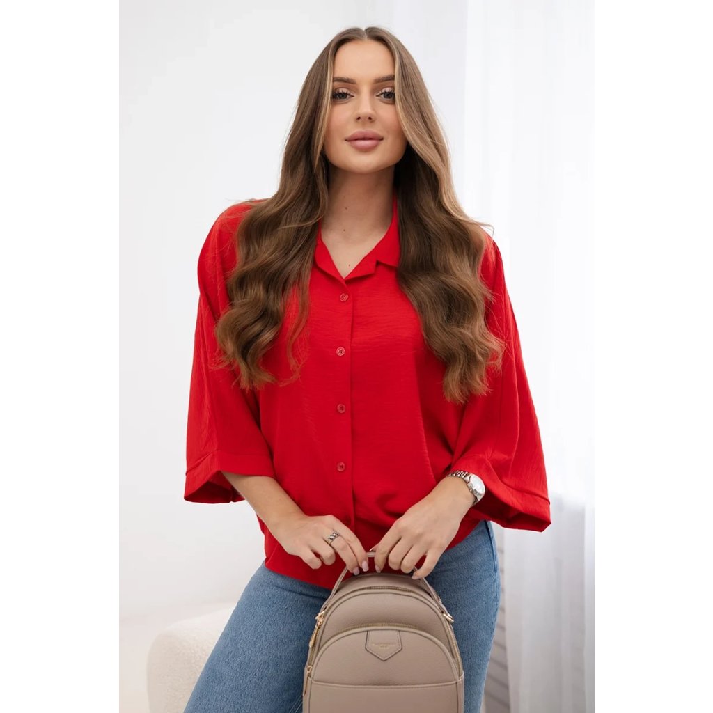 Oversize halenka s knoflíky je kombinací stylu a pohodlí. Volný střih dodává lehkost a svobodu. Halenka na knoflíky je praktickým řešením, které umožňuje nastavit hloubku výstřihu a umožňuje snadné oblékání a svlékání. Je perfektní volbou pro mnoho příležitostí, jak na společenské akce, tak pro každodenní styling. Díky své všestrannosti se oversize halenka na knoflíky perfektně hodí k různým šatníkům a vytváří módní a pohodlný vzhled. Nechte ji stát se vaším oblíbeným prvkem vašeho šatníku a dodáte každému stylu lehkost a styl. Velikost je univerzální a bude vhodná pro ženy, které nosí velikost S, M nebo L.