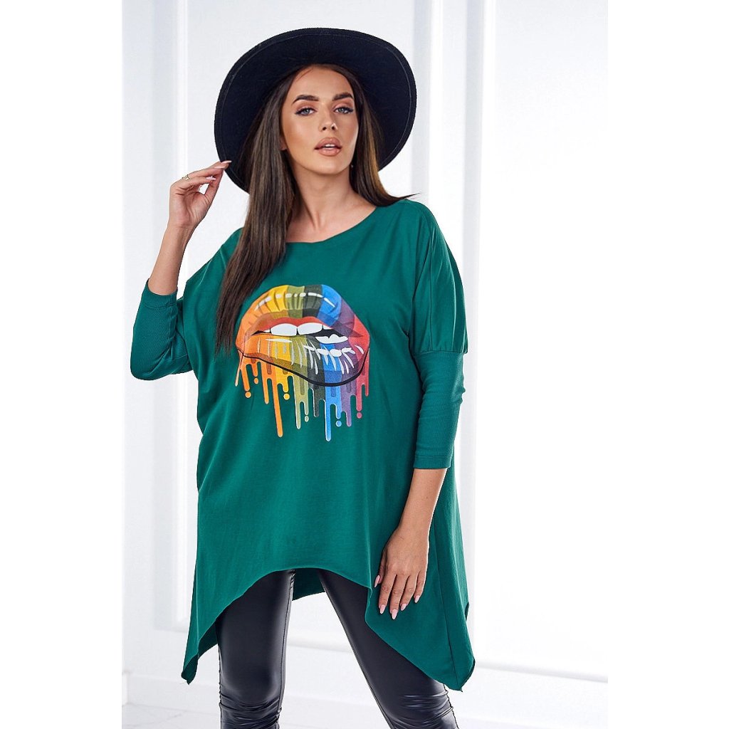 Představujeme vám super oversize halenku. Blůza má na přední straně potisk zobrazující rty v barvách duhy. Halenka s kapsami. Tato halenka se vyznačuje módním designem a precizním zpracováním. Ve vašem šatníku rozhodně nesmí chybět. Halenka je vyrobena z vysoce kvalitního materiálu. Univerzální velikost je vhodná pro dámy, které nosí každodenní oblečení ve velikostech M, L nebo XL