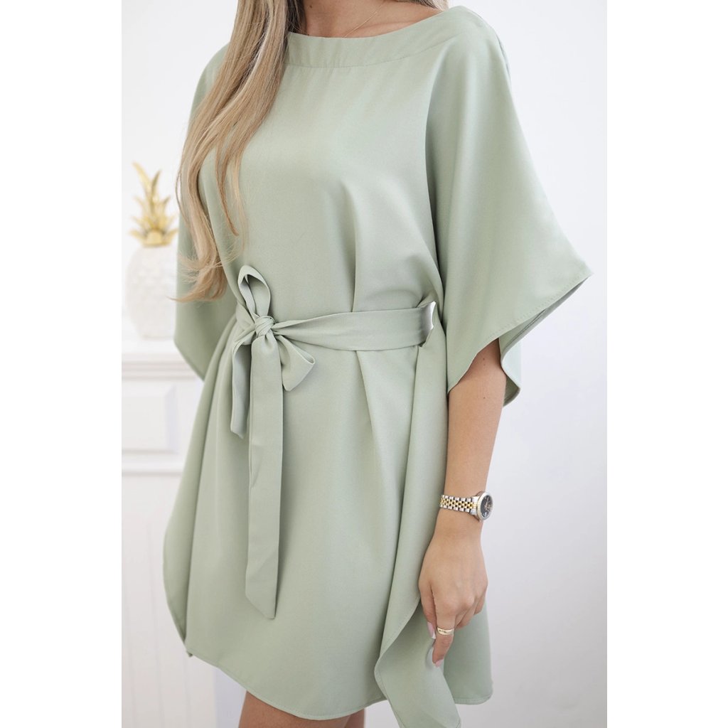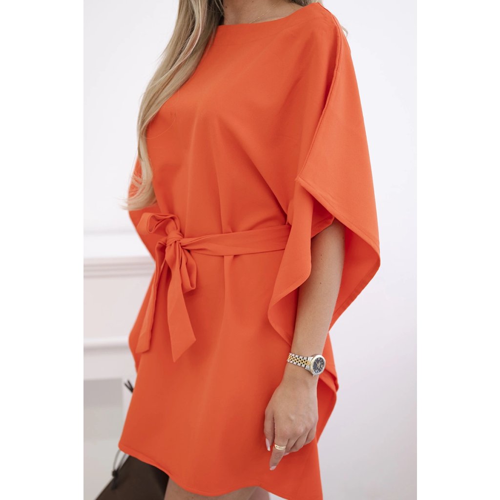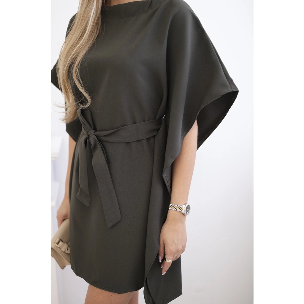 Představujeme vám módní šaty. Šaty mají široké rukávy. Šaty zavázané v pase. Šaty jsou vyrobeny z vysoce kvalitního materiálu.
