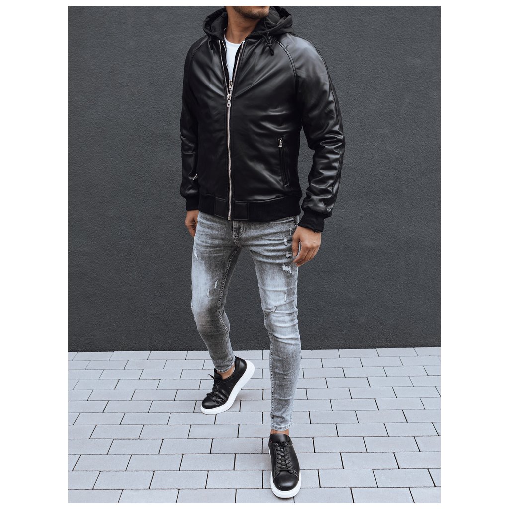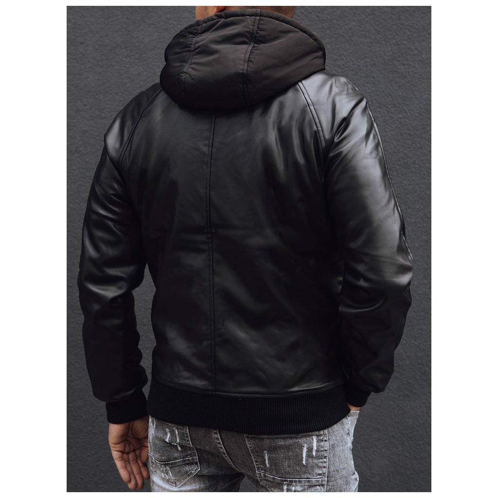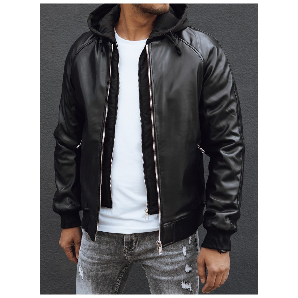 Pánská kožená bunda. Vyrobeno z umělé kůže. Odnímatelná kapuce. Zapínání na zip. Dvě boční kapsy na zip. Jedna vnitřní kapsa. Žebrované manžety a lem. Vnější materiál: 100% polyuretan