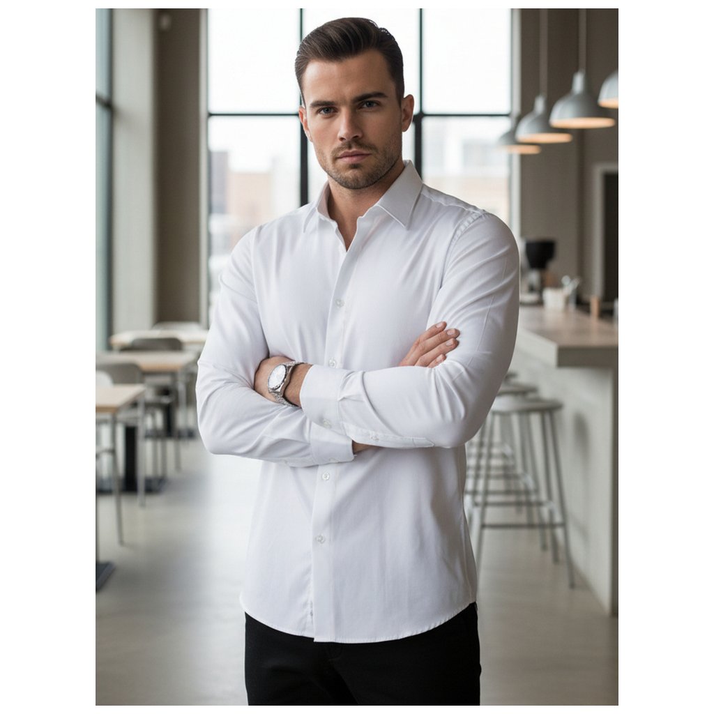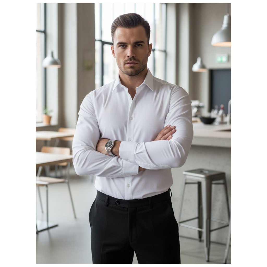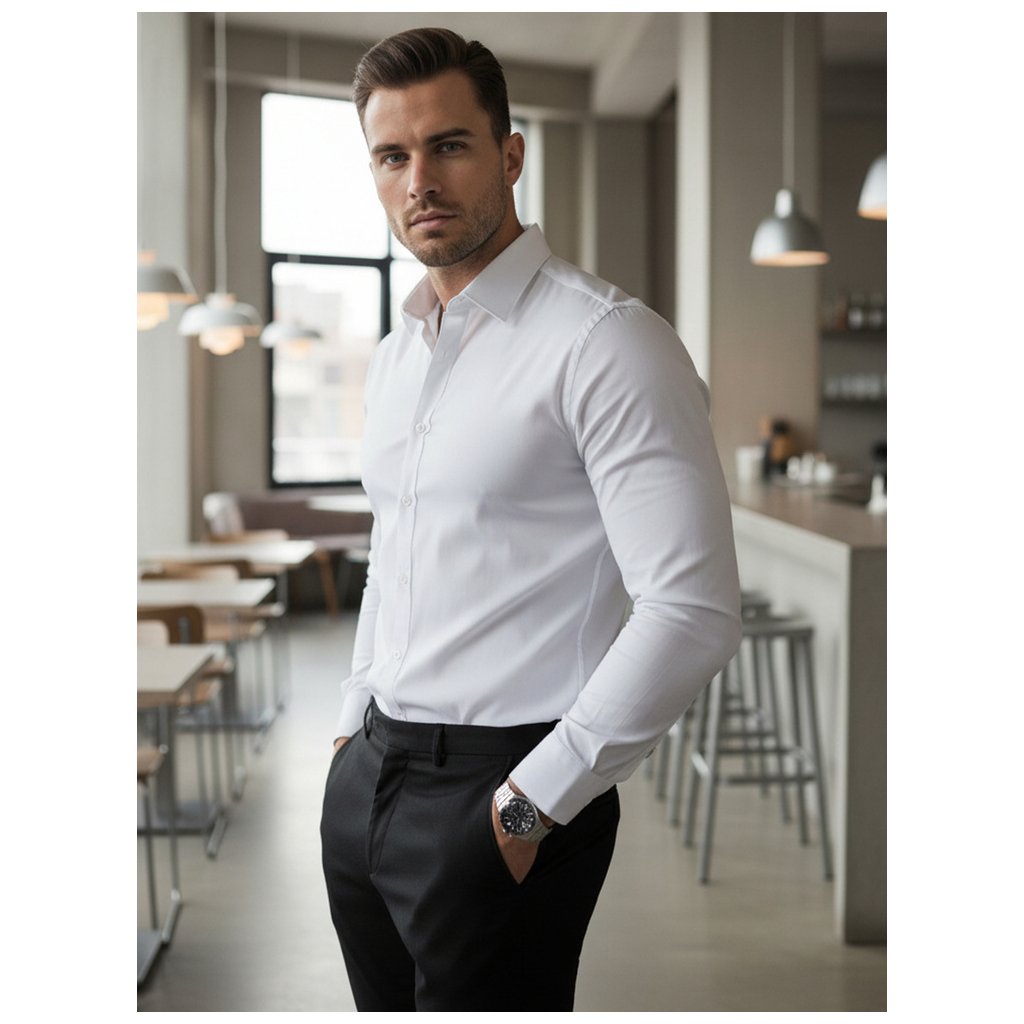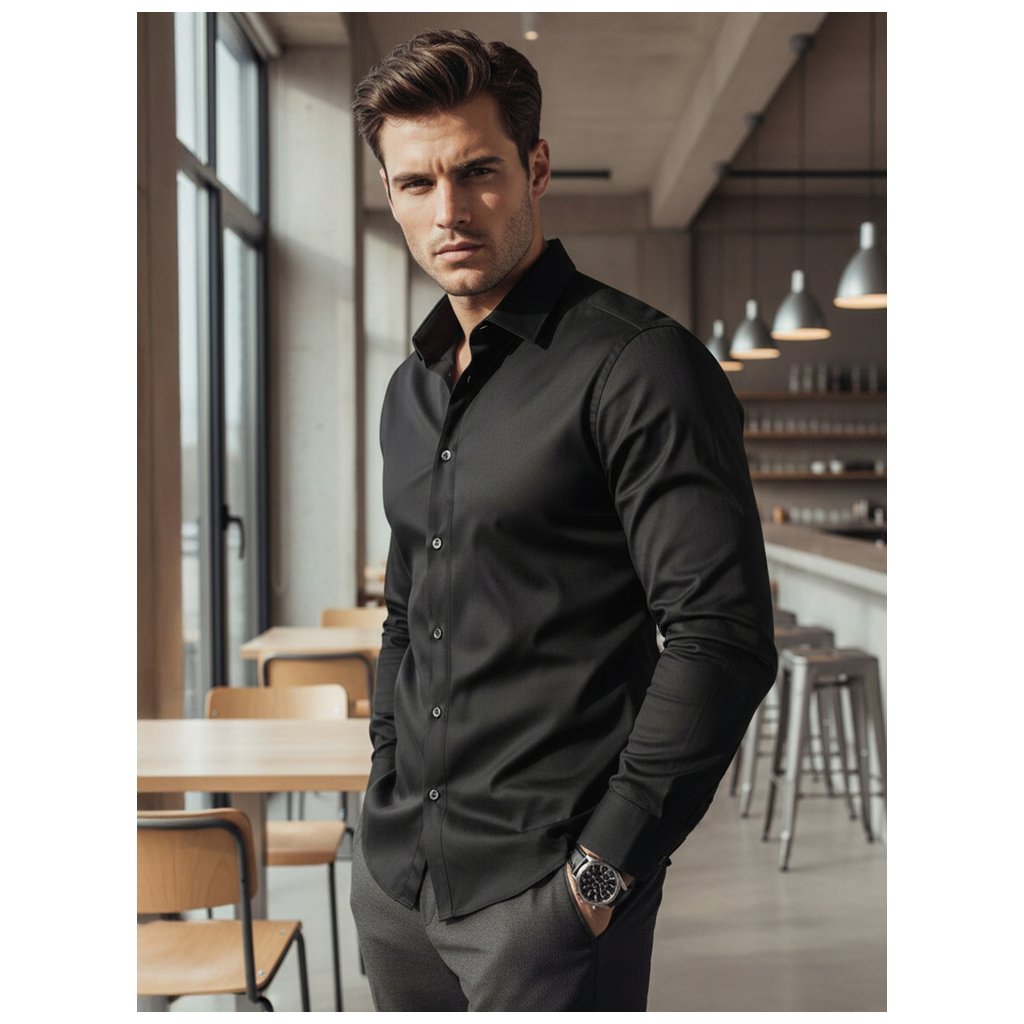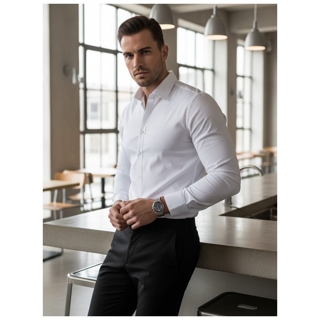 Tato košile v sobě spojuje eleganci a pohodlí, ideální pro formální příležitosti. Její pečlivě zpracovaný vzhled a jednoduchý střih zajišťují pohodlné nošení po celý den. Je skvělou volbou jak pro obchodní schůzky, tak pro formálnější události a zaručuje stylový vzhled.