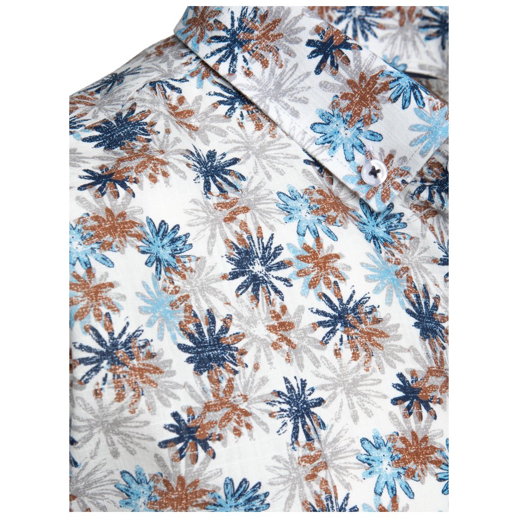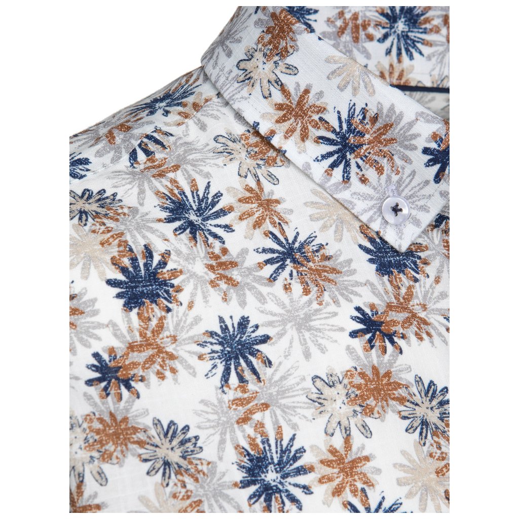 Tato pánská ležérní košile se vyznačuje výrazným kontrastním květinovým vzorem, ideální na jaro a léto. Úzký střih lichotí postavě a zapíná se na klasické knoflíky. Košile má klasický límeček a dlouhé rukávy s nastavitelnými manžetami. Skvělá volba pro každodenní nošení i neformální příležitosti.