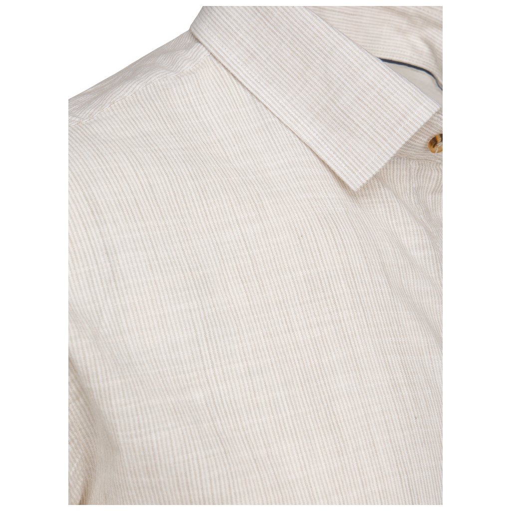 Stylová pánská ležérní košile s dlouhým rukávem s decentním proužkem a lehkou tkaninou. Klasický límec a pečlivě propracované zpracování dokonale kombinují pohodlí s elegancí. Přírodní, prodyšná tkanina z ní dělá ideální volbu pro jarní dny a letní večery.
