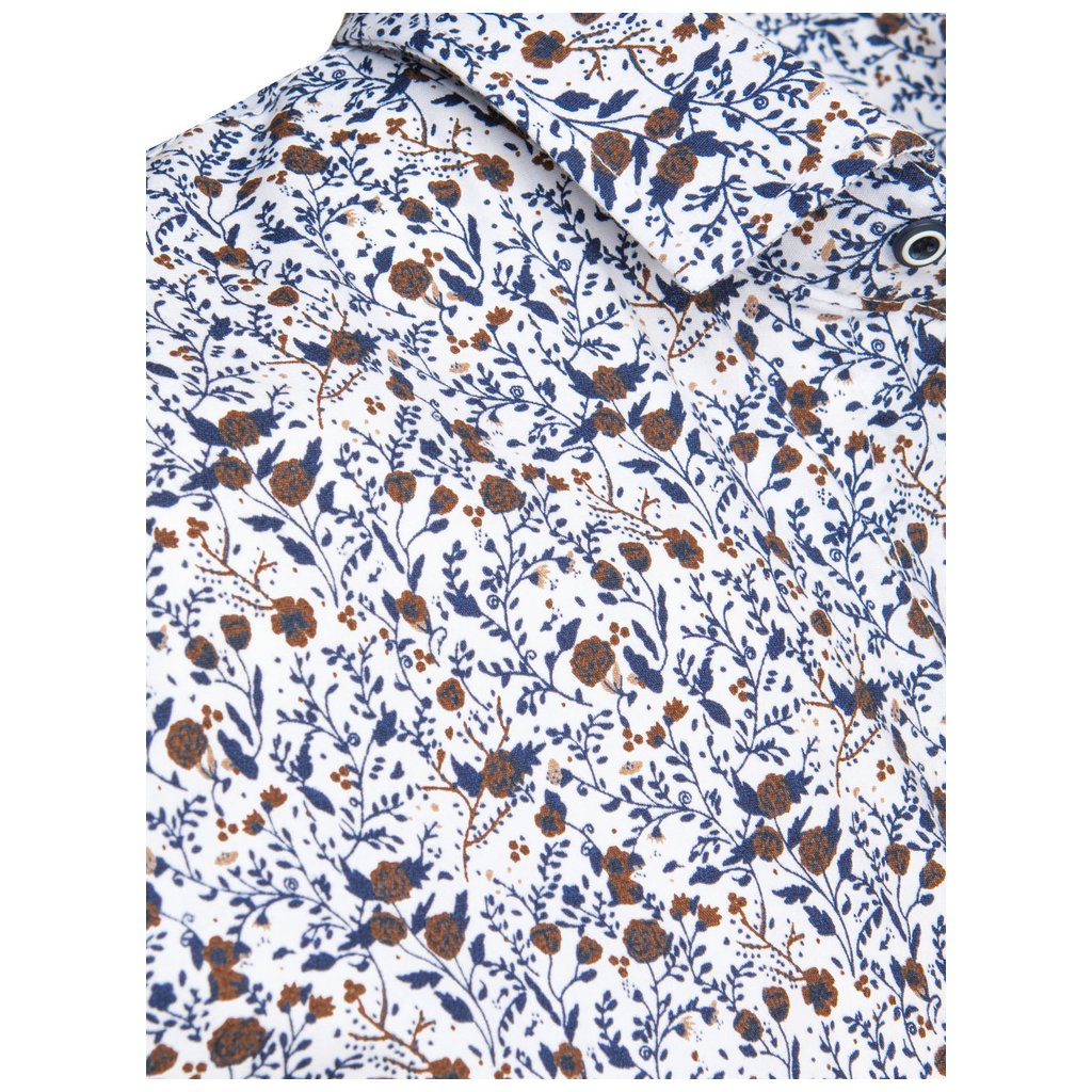 Tato pánská košile slim fit s krátkým rukávem a decentním skrytým límečkem na knoflíky je perfektní volbou na jaro a léto. Květinový potisk jí dodává svěží vzhled a slim střih lichotí postavě. Je ideální pro každodenní nošení.