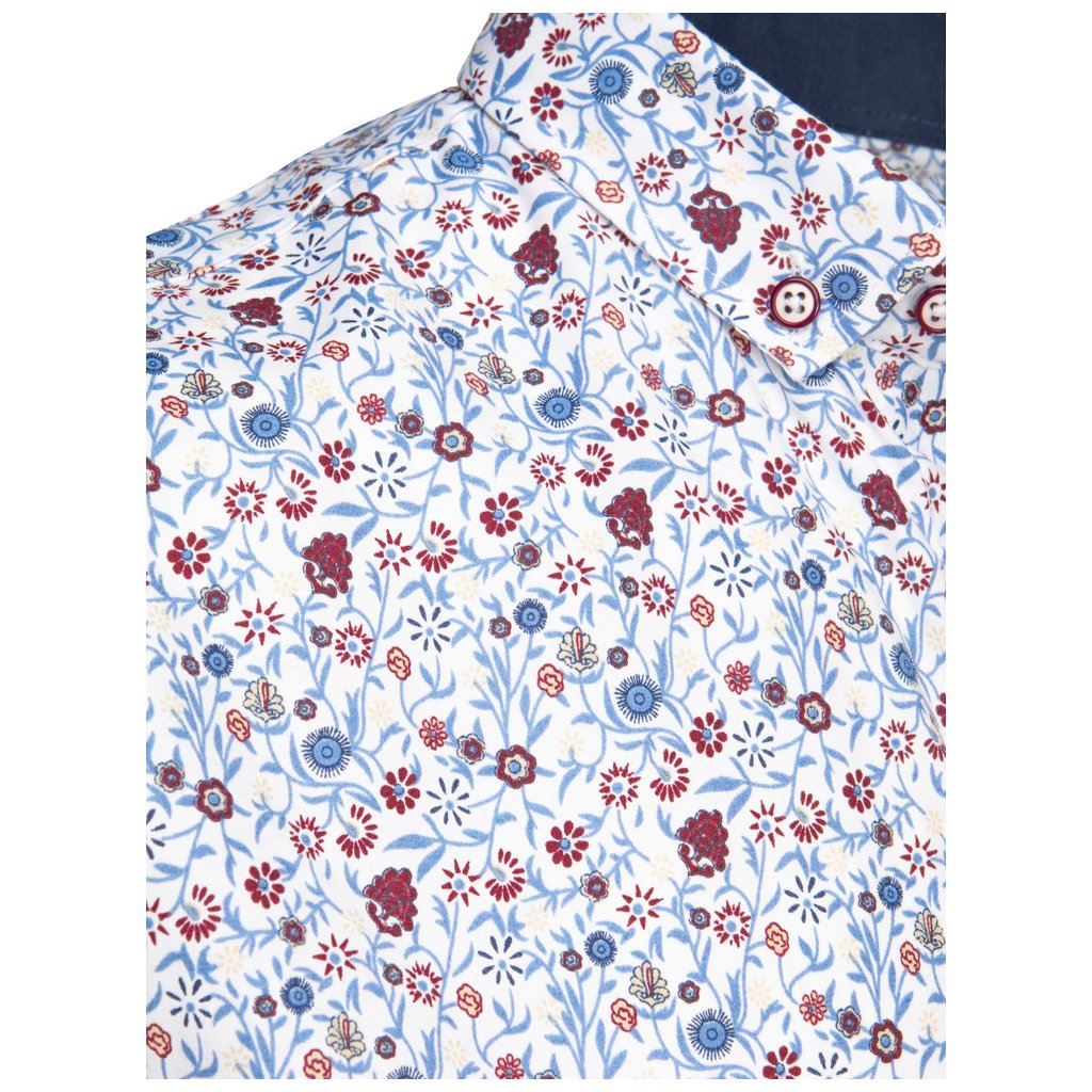 Tato pánská košile slim fit s krátkým rukávem a límečkem na knoflíky je dokonalou kombinací klasiky a svěžesti. Přiléhavý střih lichotí postavě a květinový potisk je poutavý. Ideální pro jarní a letní období – dobře se hodí k džínům nebo chino kalhotám.