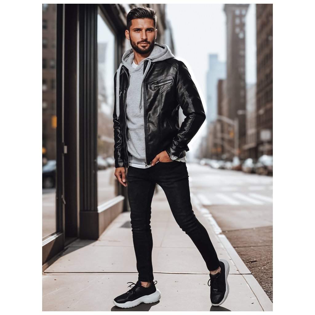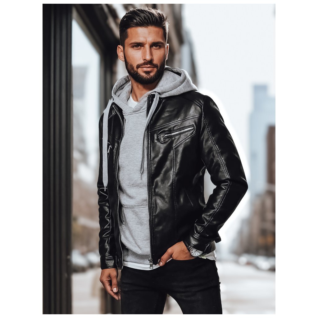 Pánská kožená bunda Barva černá DSTREET TX4330