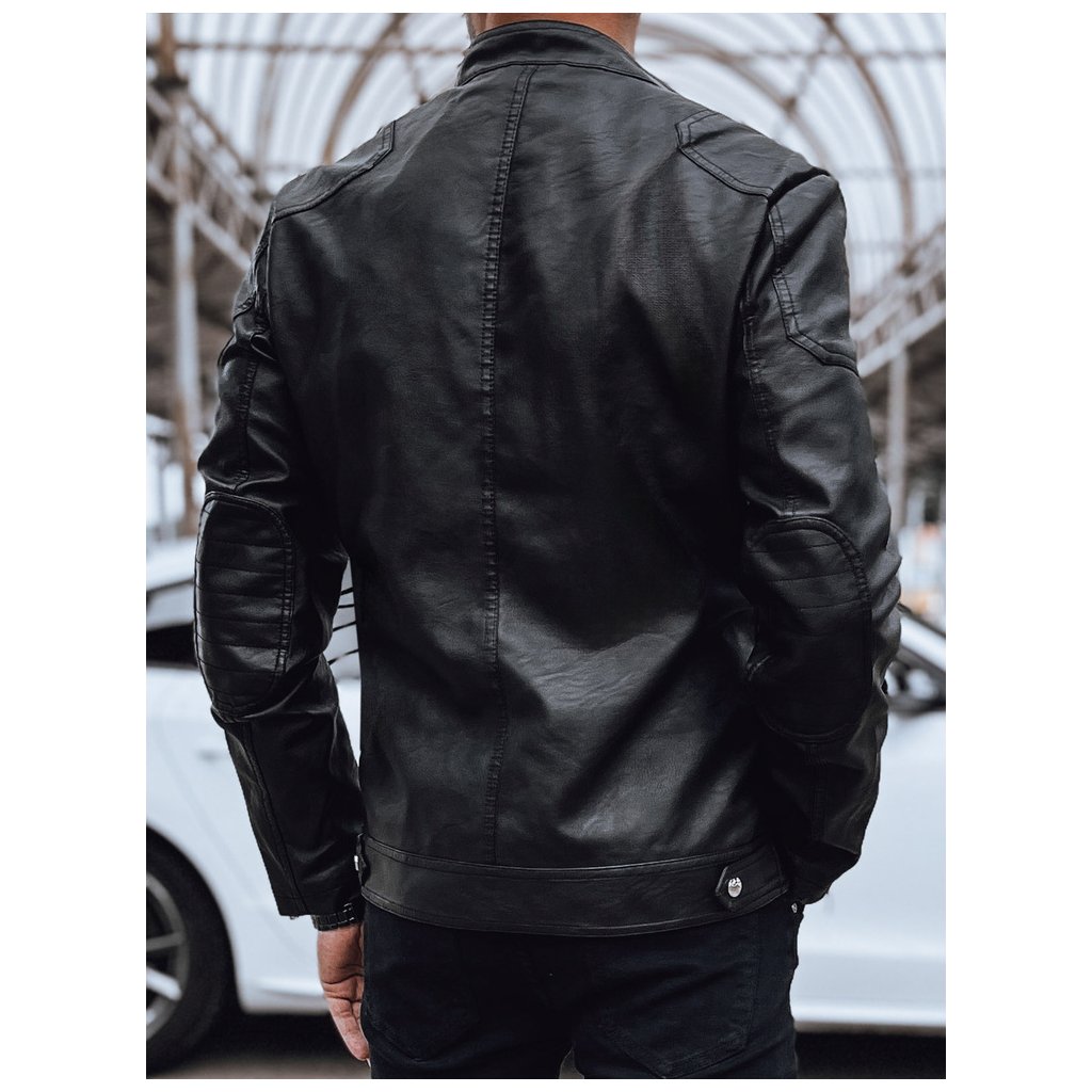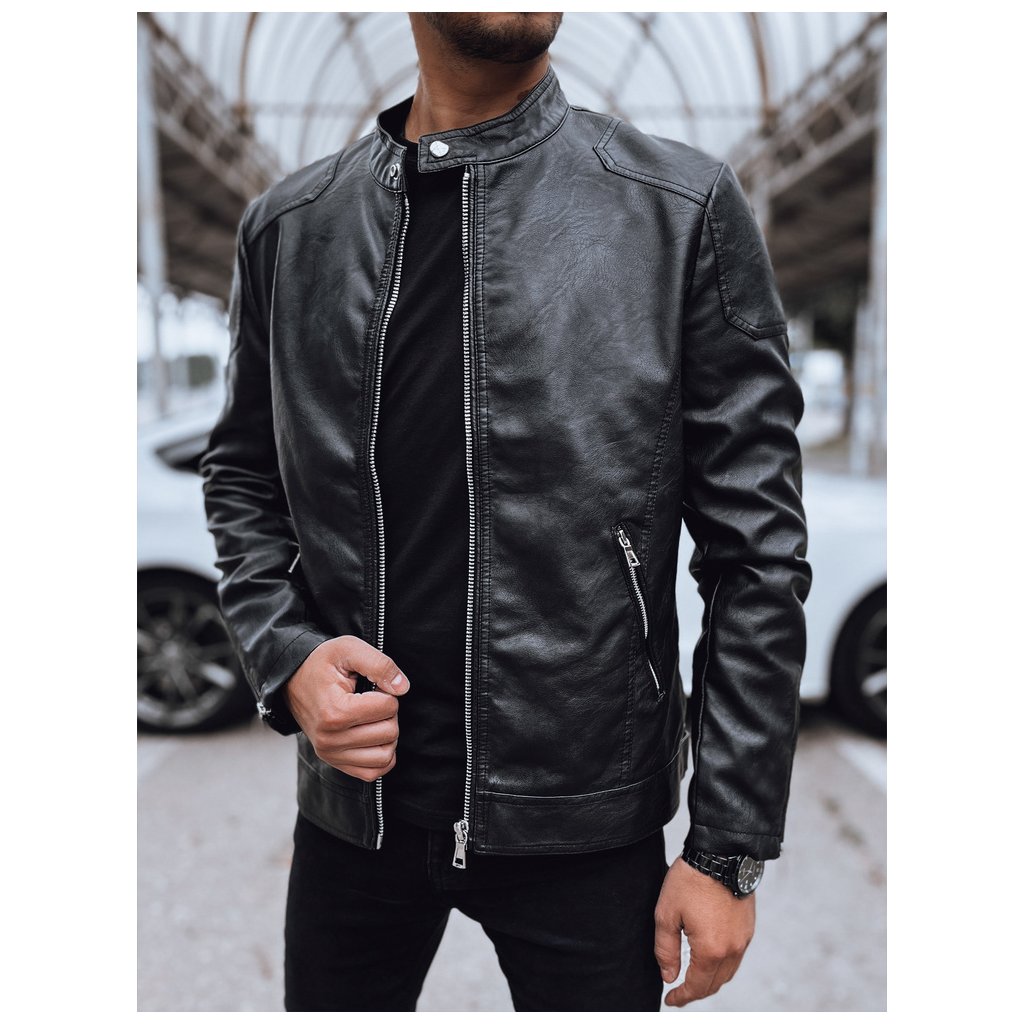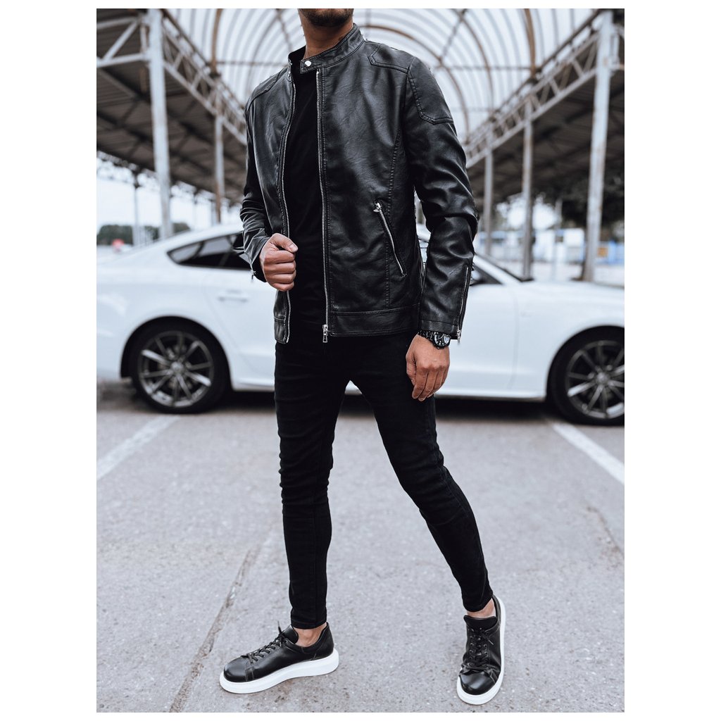 Pánská černá kožená bunda. Vyrobeno z umělé kůže. Zapínání na zip. Dvě boční kapsy na zip. Jedna vnitřní kapsa. Rukávy na zip. Vnější materiál: 100% polyuretan. Podšívka: 100% polyester.