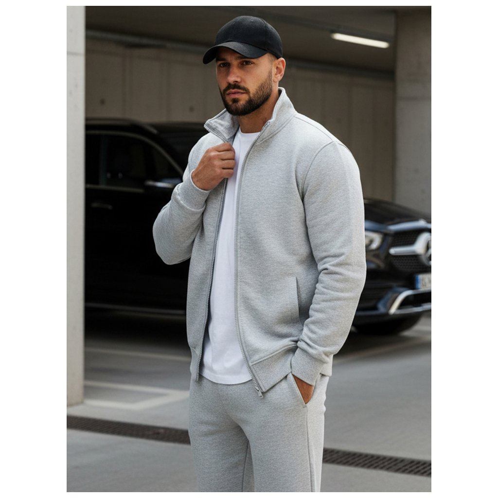 Pánská mikina rozepínací bez kapuce šedá BX4109